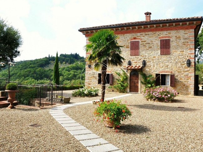 Ein charmantes Bauernhaus aus Stein, vor kurzem renoviert, mit einem Park, Schwimmbad, Panoramablick über die Hügel von Arezzo und 4 Hektar Land.