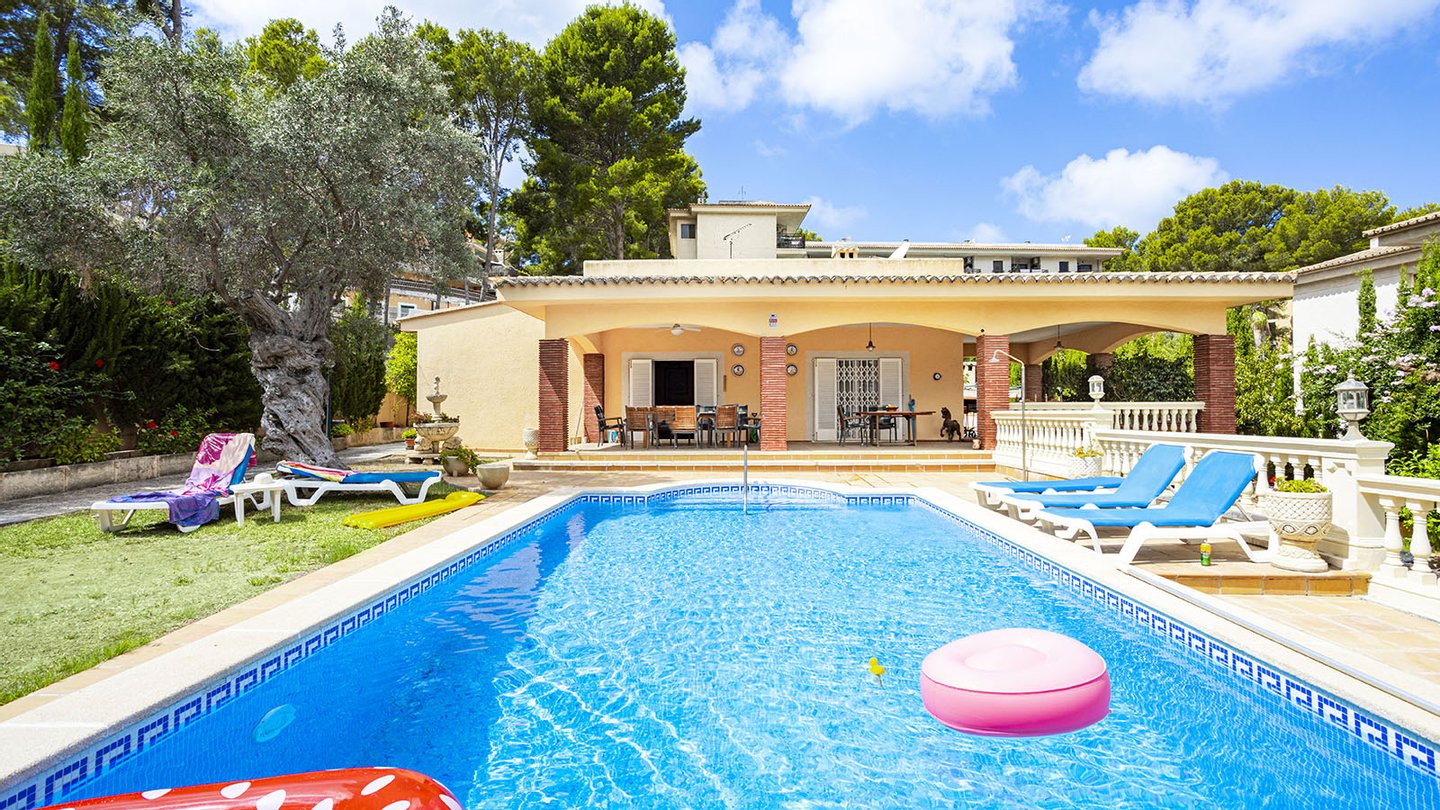 Die entzückende Villa mit viel Potenzial verfügt über eine Grundstücksfläche von ca. 1278 m2, einer ca. 246 m2 großen Wohnfläche, eine offene Terrasse von ca. 150 m2, sowie eine ca. 86 m2 große überdachte Terrasse. Geboten werden 5 Schlafzimmer, 3 Badezimmer (eines davon en suite), ein Wohnzimmer, ein Gäste-WC, ein Hauswirtschaftsraum, sowie ein Keller. Die Immobilie wird teilmöbliert angeboten und lässt viel Freiraum, Ihr neues Zuhause ganz nach Ihren Wünschen zu gestalten. Ausstattungsmerkmale sind: Klimaanlage warm/kalt, Kamin, doppelt verglaste PVC-Fenster mit Holzblenden, Telefon-, Glasfaser- und Satellitenanschluß, Einbauschränke, Fliesenboden und 2 Garagenstellplätze. Das absolute Highlight dieser interessanten Immobilie ist der tolle Außenbereich. Unvergessliche Augenblicke mit Freunden und Familie können hier zelebriert werden. Der Pool sorgt für die willkommene Erfrischung. Im schönen Garten mit Sonnenliegen kann man sich entspannen und das Traumwetter genießen.