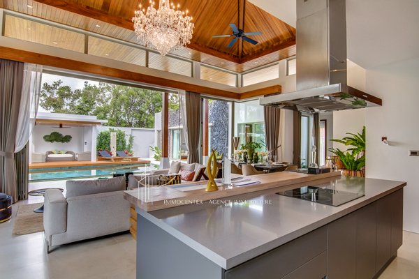 PHUKET IN BANG TAO 2 MINUTEN VOM STRAND UND 5 MINUTEN VOM BOAT AVENUE LUXURIÖSES VILLA-PROJEKT mit offener Küche zu großem und hellem Doppelwohnzimmer, 4 Master-Suiten und Waschraum