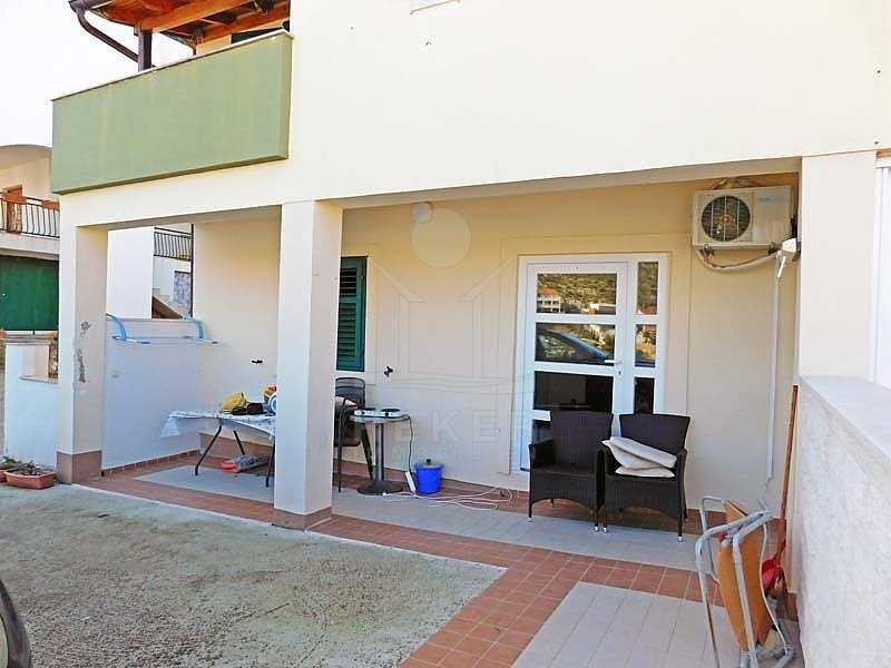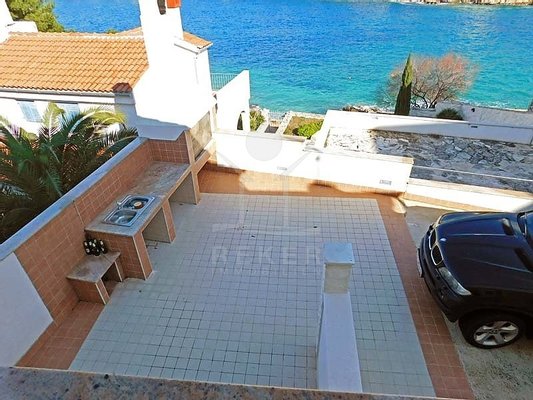 Der große Innenhof ist gepflastert und begeistert nicht nur durch die Außenküche mit Grill, sondern auch durch den phänomenalen Meerblick.