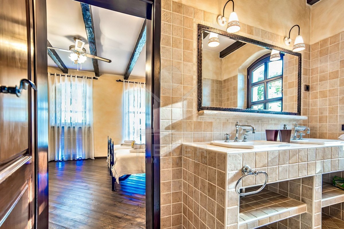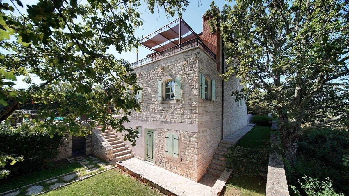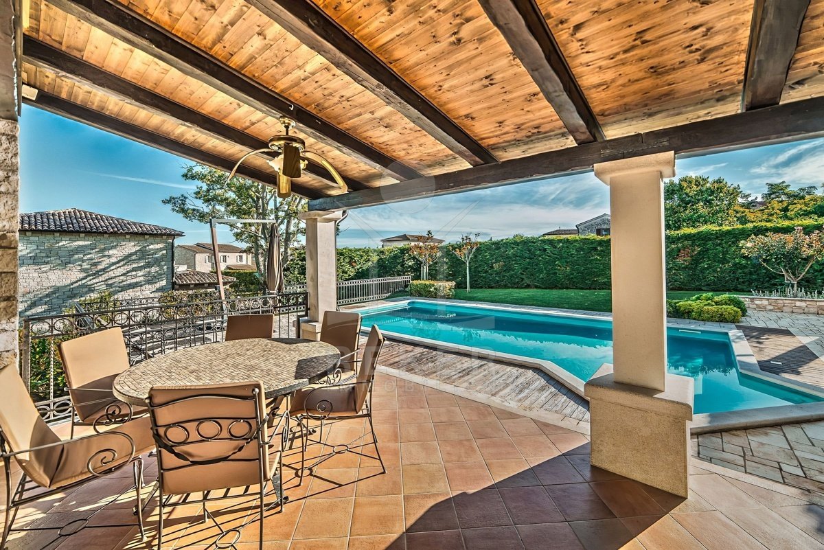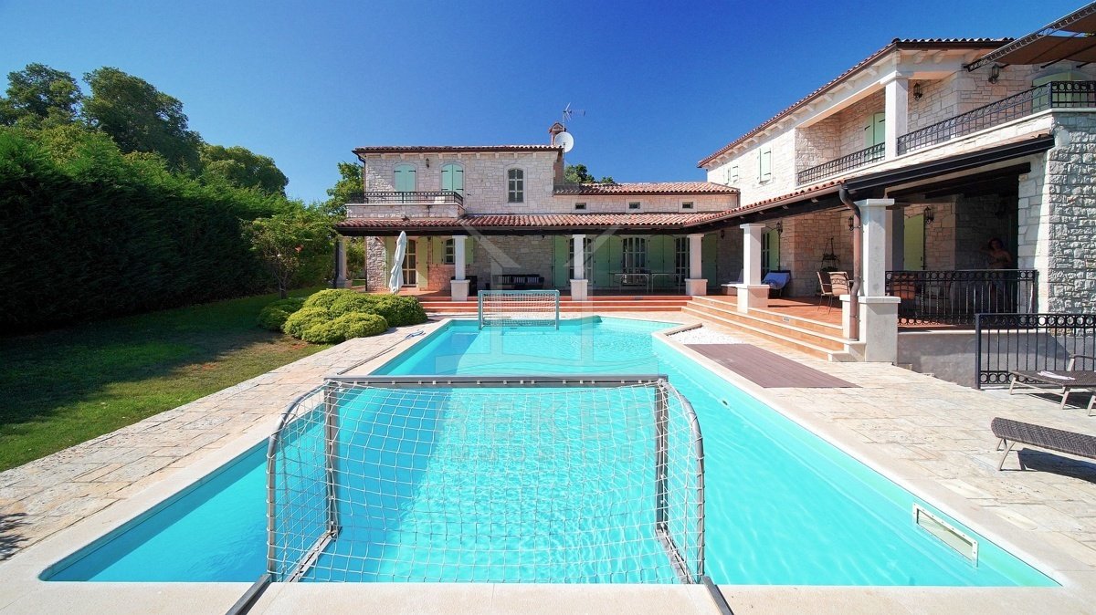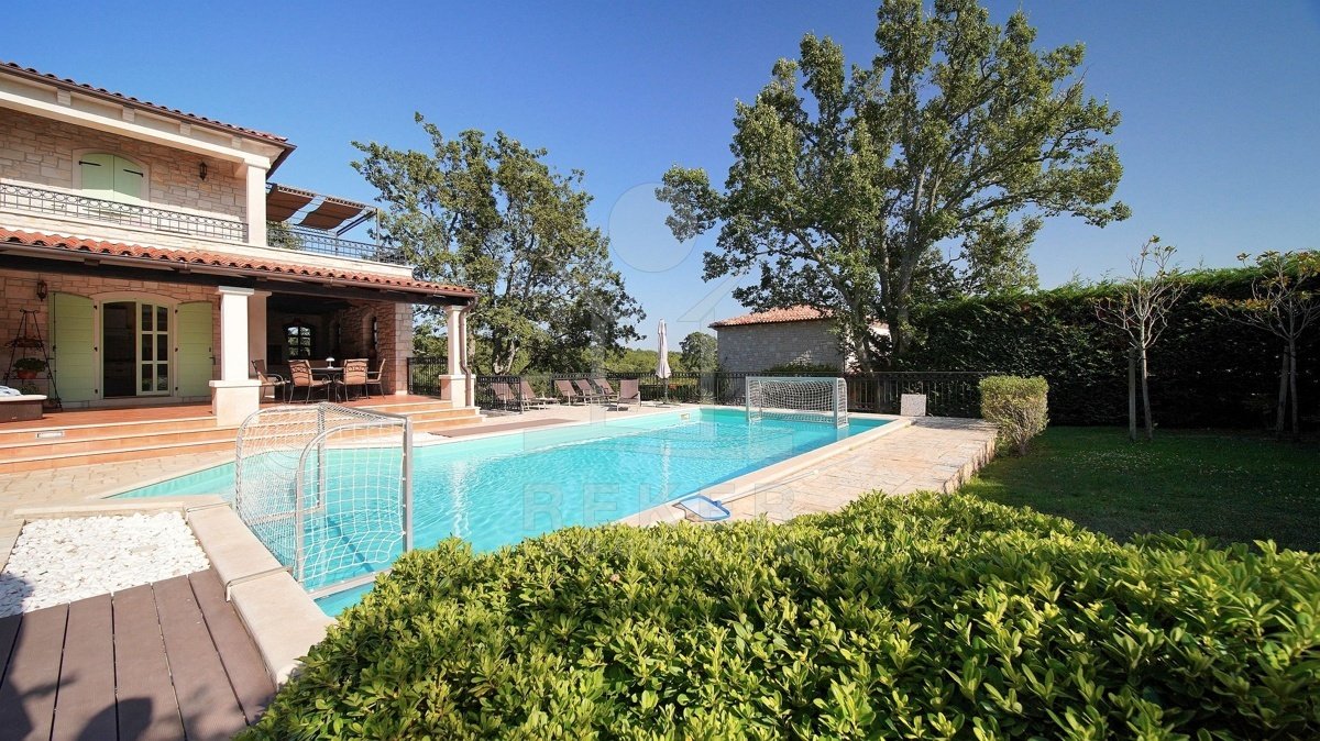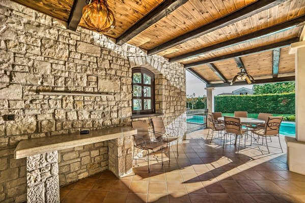 Tauchen Sie ein in die kroatische Tradition und lassen Sie sich von dieser faszinierenden 5-Sterne Luxusvilla in mediterranem Stil nahe Poreč verzaubern! Dieses traditionelle Juwel bietet Ihnen einen unvergleichlichen Aufenthalt. Genießen Sie entspannte Tage am Pool oder verbringen Sie gemütliche Abende auf der überdachten Terrasse. Die Villa beeindruckt mit ihrer außergewöhnlichen Architektur und ihrer hochwertigen Ausstattung. Die Outdoor-Küche lädt zum gemeinsamen Kochen und Essen im Freien ein. Erleben Sie den Luxus, in einem Steinhaus zu wohnen und profitieren Sie von der Nähe zu Poreč, einem der schönsten Küstenorte Istriens. Hier erwartet Sie ein Lebensstil, der Tradition und Luxus auf einzigartige Weise vereint.