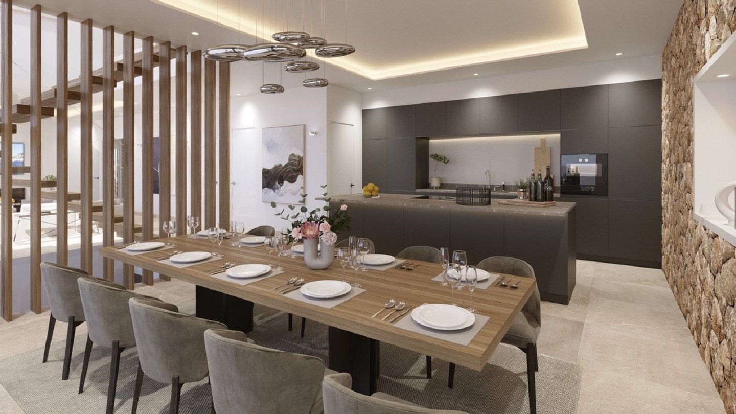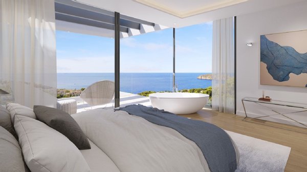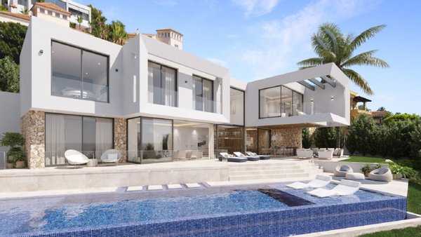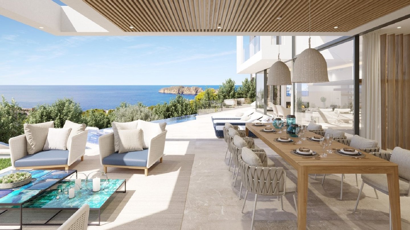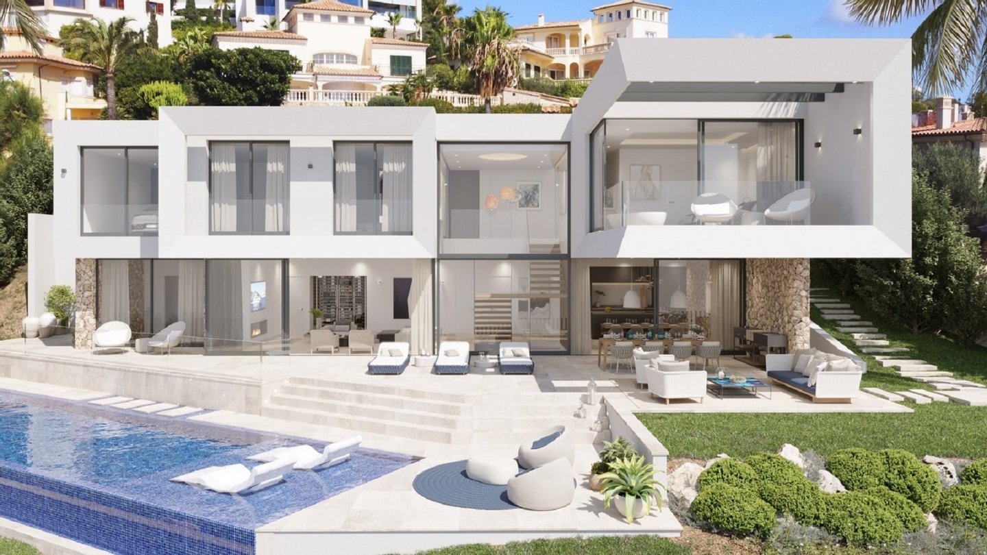 Neubau-Projekt: Luxuriöse Villa mit atemberaubendem Hafen- und Meerblick in nobler Wohnlage im Südwesten der Sonneninsel.Wohnträume werden wahr! Diese elegante Villa ist nach Süden ausgerichtet und verfügt über eine Grundstücksfläche von ca. 874 m2, sowie eine Wohnfläche von ca. 536 m2. Das Anwesen wird mit hochwertigsten Materialien nach deutschem Standard gebaut und die Fertigstellung ist für 2025 geplant. Auf 2 Etagen verteilen sich 4 Schlafzimmer mit Bädern en suite, 1 Gäste-WC, eine Ankleide, ein Wohn-Esszimmer, eine offene Einbauküche ausgestattet mit Gaggenau-Elektrogeräten, 1 Hauswirtschaftsraum, 1 Abstellraum, 1 Mediaraum, 1 Gym und 1 Kellerraum. Die offene Raumgestaltung und die großflächigen Panoramafenster erfüllen die Räumlichkeiten mit viel natürlichem Licht und erlauben einen sensationellen Blick auf das Meer, die Malgrat Inseln und den Hafen Port Adriano. Weitere Qualitätsmerkmale sind: Klimaanlage warm/kalt, Fußbodenheizung über Wärmepumpe, Domotik-System, Einbauschränke, Naturstein- und Parkettböden, Sonnenschutz-Screens, Dornbracht-Armaturen, indirekte Beleuchtung, 1 Garagenplatz, 2 weitere PKW-Stellplätze und vieles mehr. Die luxuriöse Ausstattung schafft ein einzigartiges Wohngefühl. Für die ultimative Entspannung sorgt der Außenbereich mit Infinity-Pool, Sonnenterrasse und mediterran angelegtem Garten. Immobilien auf Mallorca wie diese wunderschöne Neubau- Villa sind eine Investition in die Zukunft. Lassen Sie sich begeistern!Das eindrucksvolle Anwesen befindet sich im gefragten Villenwohnort Nova Santa Ponsa. Es ist ein Paradies für Golfliebhaber, denn gleich 4 sehr beliebte Golfplätze befinden sich in unmittelbarer Nähe. In wenigen Minuten mit dem PKW erreicht man das Ortszentrum mit vielen Geschäften, Sandstränden, internationale Bars und Restaurants. Die imposante Inselhauptstadt, Palma de Mallorca, eignet sich perfekt für Shoppingtouren und ist ca. 20 Minuten mit dem PKW entfernt. Den internationalen Flughafen erreicht man in ca. 30 Autominuten.Für weitere Informationen zu diesem oder anderen Objekten, kontaktieren Sie bitte Casa Nova Properties Ihren Immobilienmakler im Südwesten von Mallorca.