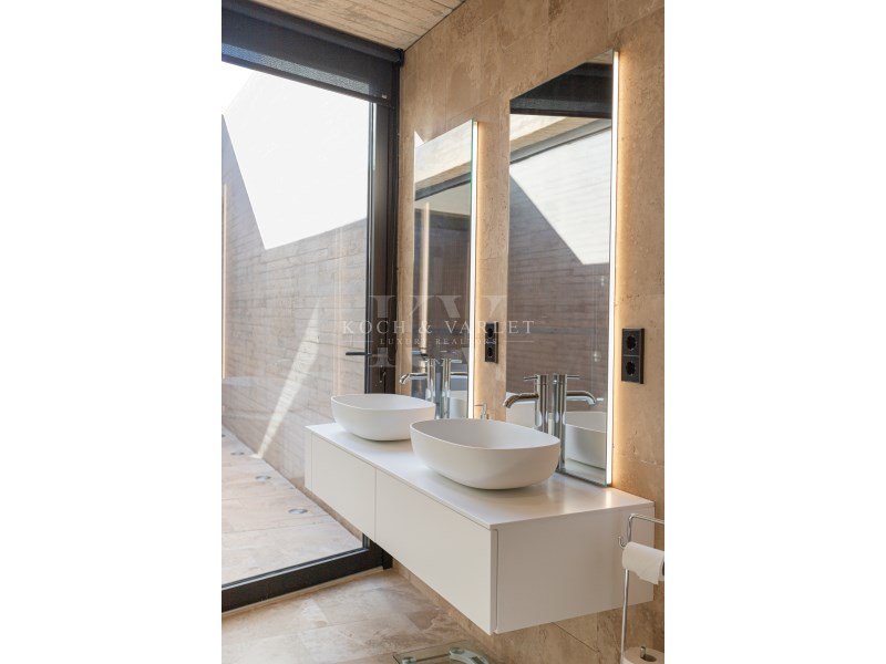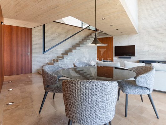 Recherchant la noblesse des matériaux, l'élégance de leurs formes et le travail des tons et des textures, chaque espace a été conçu à la perfection, maximisant les volumes, jouant avec les contrastes entre le béton, le bois et le marbre au sol. Vous serez émerveillés par cette uvre d'art, une maison unique, baignée de lumière naturelle, profitant de toutes les nouvelles technologies et d'équipements haut de gamme. Cette propriété confortable et très privée se compose de 2 étages et est reliée par des escaliers flottants en béton et un ascenseur.