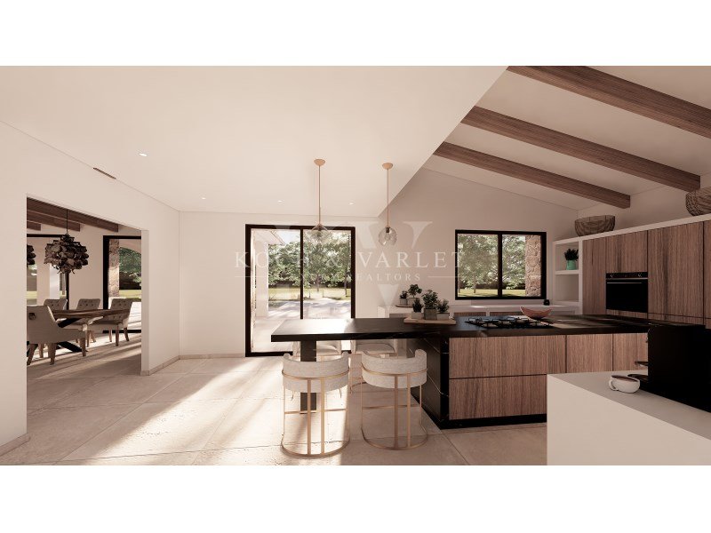 Les extérieurs fabuleux sont composés de grandes terrasses ensoleillées, d'une magnifique naya en pierre naturelle, d'une piscine à couper le souffle et d'une cuisine d'été.