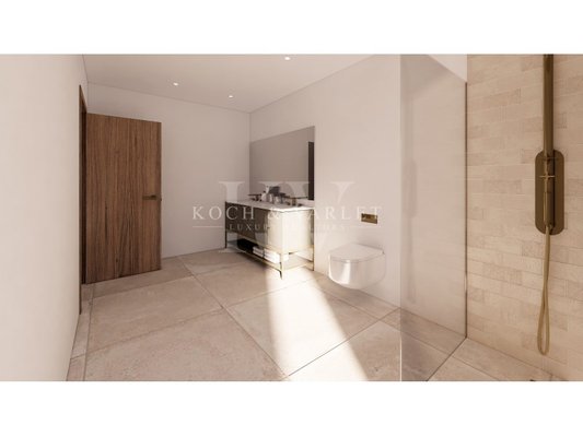 En montant le somptueux escalier flottant, vous atteignez l'étage des chambres où se trouvent la master bedroom, qui bénéficie des plus belles vues de la villa, une grande salle de bain moderne, ainsi qu'un dressing. Ainsi que deux autres chambres, chacune ont leur salle de bain spacieuse ainsi qu'un accès par de larges baies vitrées aux terrasses extérieures, idéales pour bronzer et admirer la vue sur la vallée.