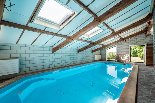 Magnifique piscine couverte dans le bâtiment ancien (briques et vieilles pierres)