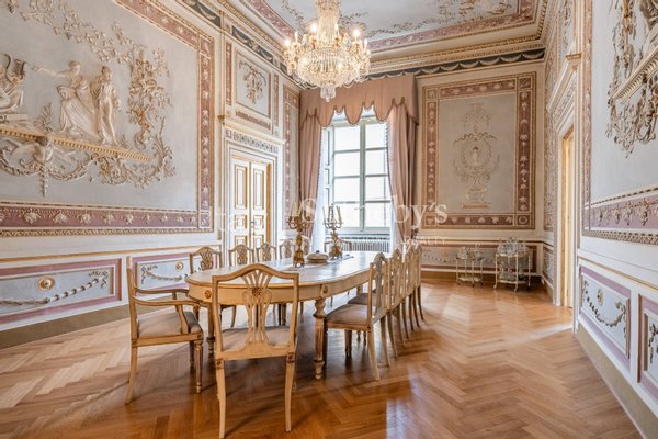In der Herzen der Stadt Lucca, nur wenige Schritte vom berühmten Amphitheaterplatz entfernt, in einem der ältesten Gebäude aus dem 16. Jahrhundert, befindet sich diese wunderschöne Wohnung im ersten Stock, die über einen Aufzug mit direktem Zugang zum Eingangssalon der Immobilie verfügt. Die etwa 500 qm große Wohnung hat zwei Eingänge zusätzlich zum Haupteingang und ist wie folgt aufgeteilt: Eingangssalon mit majestätischem Kamin, Speisesaal mit Stuckverzierungen, Salon mit einem Decke mit Kassettendecke und Holzgalerie, Wohnzimmer mit Wänden in Damaststoff verkleidet und zwei Gästetoiletten. Die Küche mit Balkon ist über einen Flur erreichbar. Der Schlafbereich verfügt über drei geräumige Schlafzimmer mit eigenem Bad und ein Dienstmädchenzimmer mit eigenem Bad. Es gibt ein weiteres geräumiges Schlafzimmer, ebenfalls mit eigenem Bad, auf einer Zwischenebene zwischen dem Erdgeschoss und dem ersten Stock, das über interne Treppen und auch direkt über das gemeinschaftliche Treppenhaus erreichbar ist. Darüber hinaus gibt es einen bequemen Waschraum und drei Abstellräume. Im Erdgeschoss gibt es einen Flur, der exklusiv für die Wohnung genutzt wird, mit einem Abstellraum unter der Treppe, der die Eingangsloggia zum Innenhof verbindet, der auch über ein Zufahrtstor zugänglich ist. Der Heizungsraum im Innenhof, der ebenfalls exklusiv genutzt wird, ist über einen Durchgang über den Innenhof erreichbar, der mit Kies ausgelegt ist.