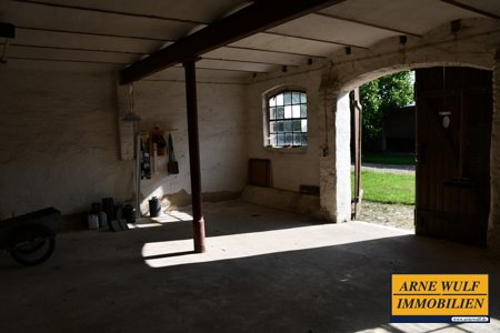 Auf dem Grundstück befindet sich ein ehemaliges massives Stallgebäude mit einer Nutzfläche ca.400m² auf zwei Ebenen. Des Weiteren befinden sich noch weitere, massive Nebengebäude auf dem Grundstück. In diesen befinden sich auch die Heizungsanlagen und das Tanklager. Hinter der Scheune befindet sich die große Wiese, diese ist über eine befestigte Straße von hinten befahrbar.
