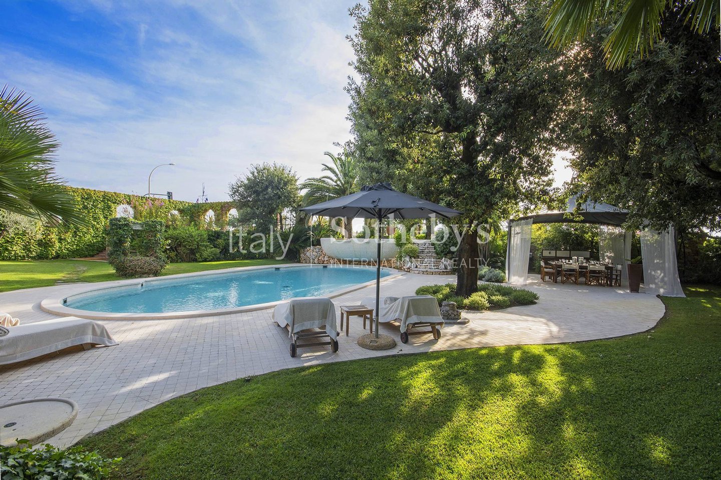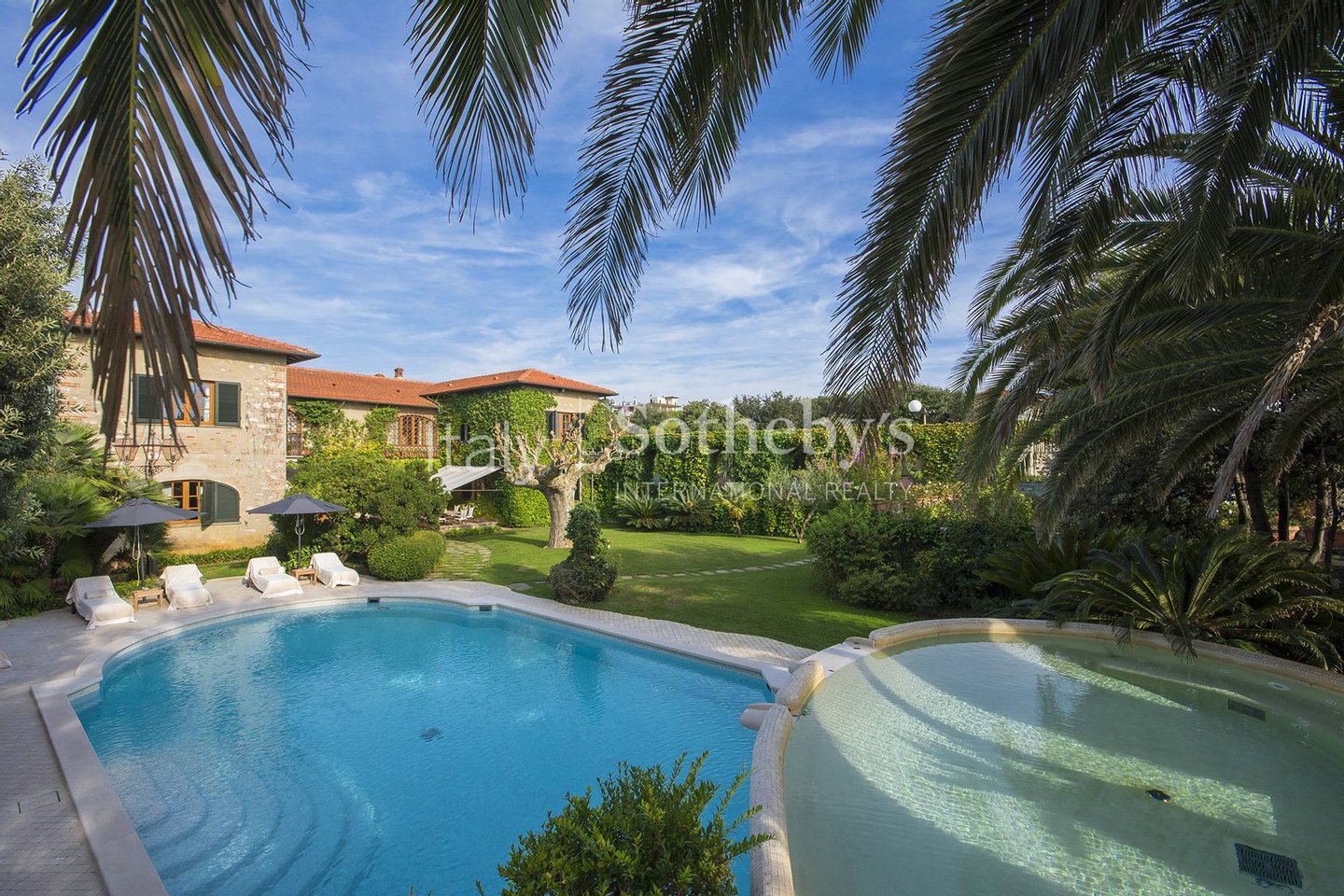Marina di Pietrasanta/Forte dei Marmi: wunderschöne und einzigartige Immobilie aus Anfang 1900, vom Architekten Tiziano Lera entworfen, 30 m vom Meer entfernt. Sie ist in sehr gutem Zustand, mit hochwertigen Materialen aufgebaut. Es besteht aus: 690 qm Hauptvilla, 60 qm Nebengebäude, 180 qm Villa für Gaste, 3500 qm privatem Garten, 10 Schlafzimmern und 10 Badezimmern, Billiard-Raum, Pool, Sauna und Garage. Absolute Privacy, Garten mit jahrhundertalten Bäumen.