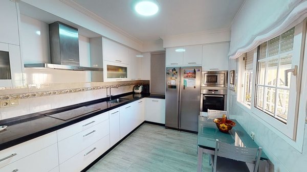 Doppelhaushälfte mit sechs Schlafzimmern und vier Bädern in einem Wohngebiet in San Javier, Murcia. Das Erdgeschoss bietet eine Eingangshalle, die in ein großes Wohn-Esszimmer und eine separate, voll ausgestattete Küche mit Speisekammer führt. Eine