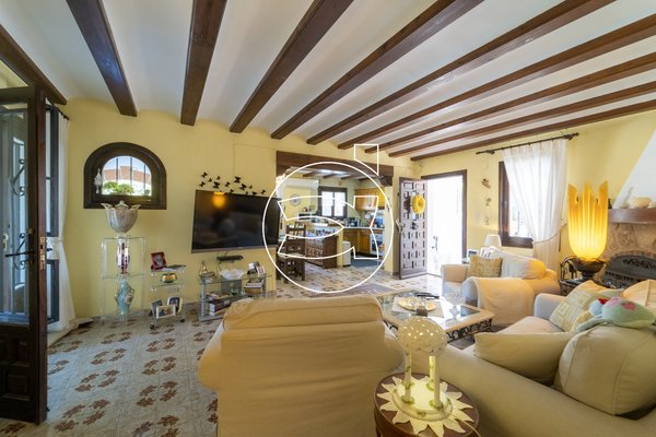 Die Wanderwege zum Montgo sind fußläufig von dem Haus zu erreichen. Über eine Terrasse gelangen Sie durch die Eingangstür in ein großes Wohnzimmer mit angrenzendem Esszimmer, einem Kamin und einer voll ausgestatteten, offenen Küche.