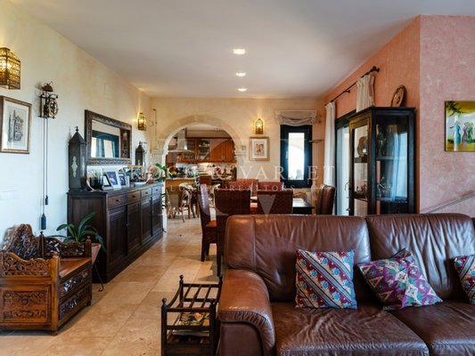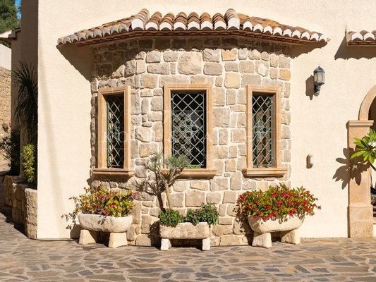 La villa est agrémentée de luxueux détails tels que des sols en marbre, des arches en pierre Tosca importées des îles Baléares et des fenêtres en aluminium équipées de moustiquaires et de volets. La villa possède le chauffage central et des ventillateurs de plafond.