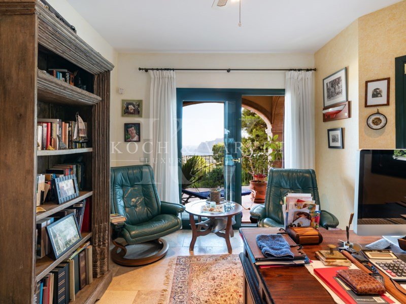 Un atout majeur : sur le total de 2 567 m² de terrain, 740 m², actuellement aménagés en jardin luxuriant avec des arbres fruitiers tels que des vignes et des citronniers, sont inclus dans la vente. Ce terrain supplémentaire, accessible par un escalier en pierre, offre une belle opportunité d'investissement. Avec ses vues merveilleuses sur la mer, il peut être vendu et construit séparément à l'avenir.