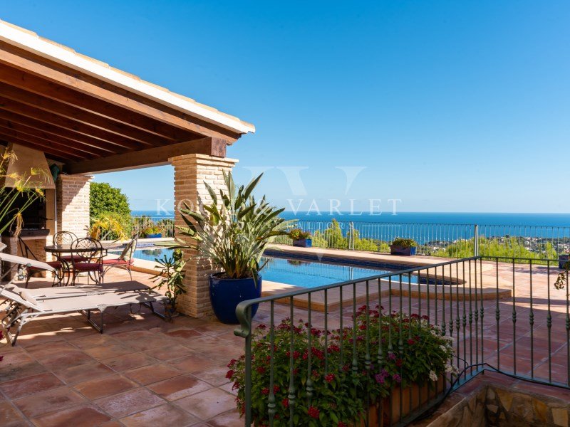 L'espace extérieur est tout aussi impressionnant. Directement accessible depuis le salon, vous pourrez vous détendre sous la charmante 'naya' espagnole. Sur la gauche, une grande piscine de 65 m² vous invite à la détente, entourée de terrasses spacieuses et d'une cuisine d'été couverte par une pergola en bois et en pierre. Le lieu idéal pour savourer le doux soleil espagnol en famille.