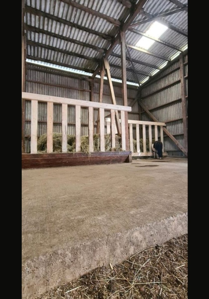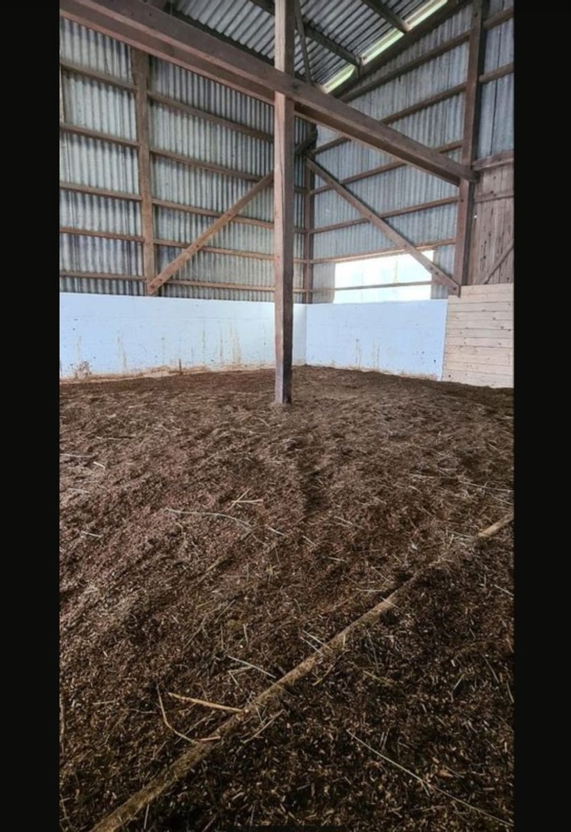 Die große Scheune (ca. 15m x 18m) besteht aus mehreren Teilen und teilweise aus zwei Geschossen, im unteren Bereich befindet sich Platz für eine Sattelkammer, sowie 3 bis 6 Pferdeboxen. Hier besteht die Möglichkeit 3 Boxen mit großen Paddocks zu errichten. Im oberen Bereich befindet sich der große Offenstall mit direktem Zugang zur ca. 1,4 ha großen Weide und zum Paddock-Trail.