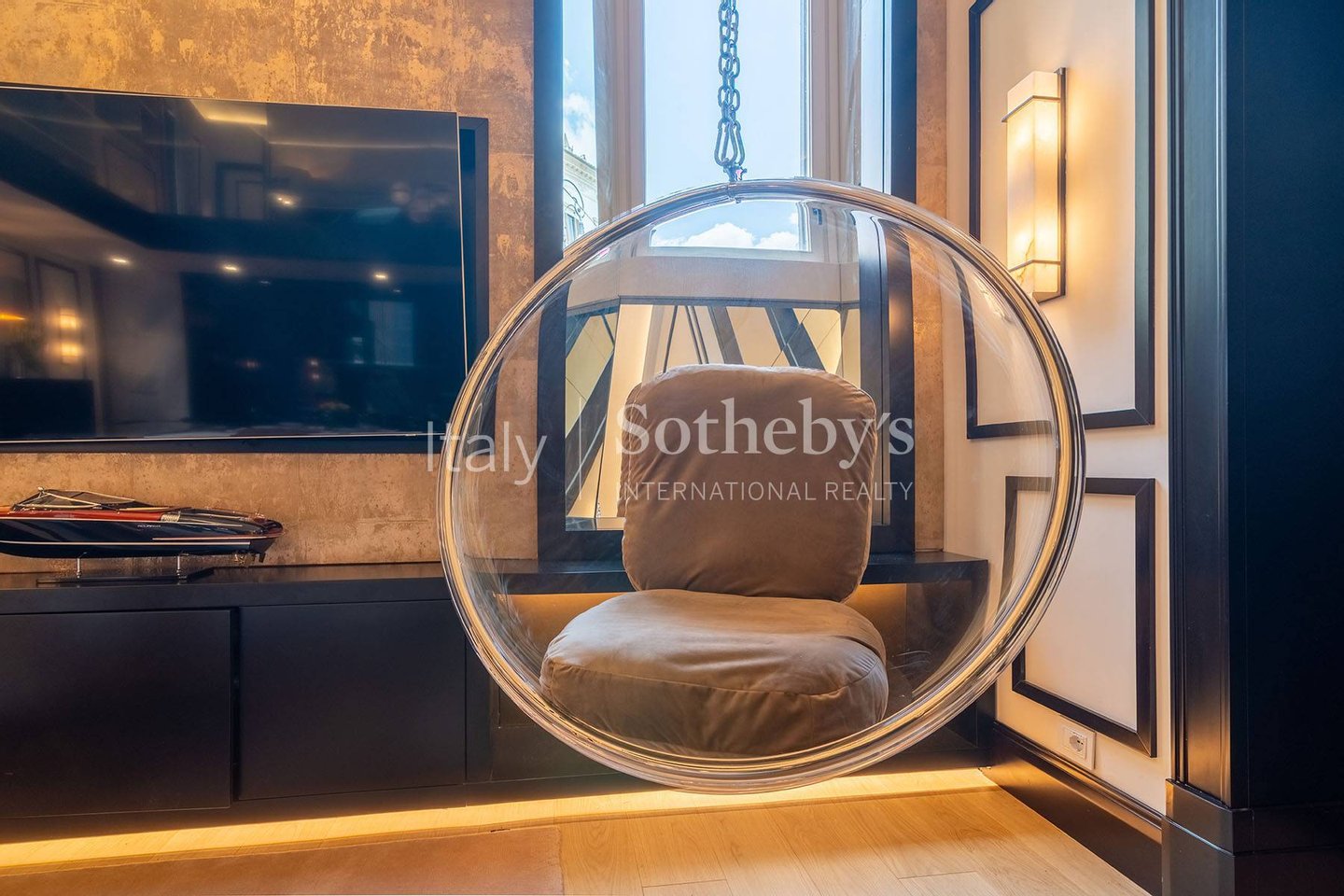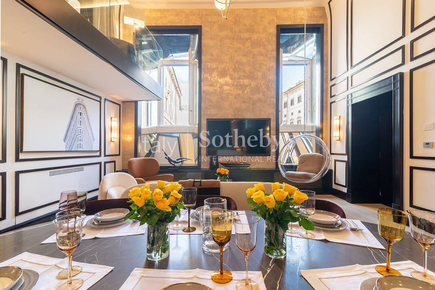Die von Ihnen beschriebene Wohnung scheint eine außergewöhnliche Luxusimmobilie in einem historischen Gebäude im Herzen von Rom zu sein. Dieses Schlüsselfertig-Loft mit großzügigem Wellnessbereich und maßgefertigten Möbeln ist das Ergebnis eines