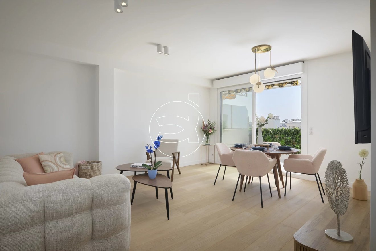 Außergewöhnliche Wohnung mit Meerblick, aus hochwertigen Materialien gebaut, von einem Architekten dekoriert und möbliert, um das milde Klima der Côte d'Azur im Herzen der Banane in Cannes zu genießen.