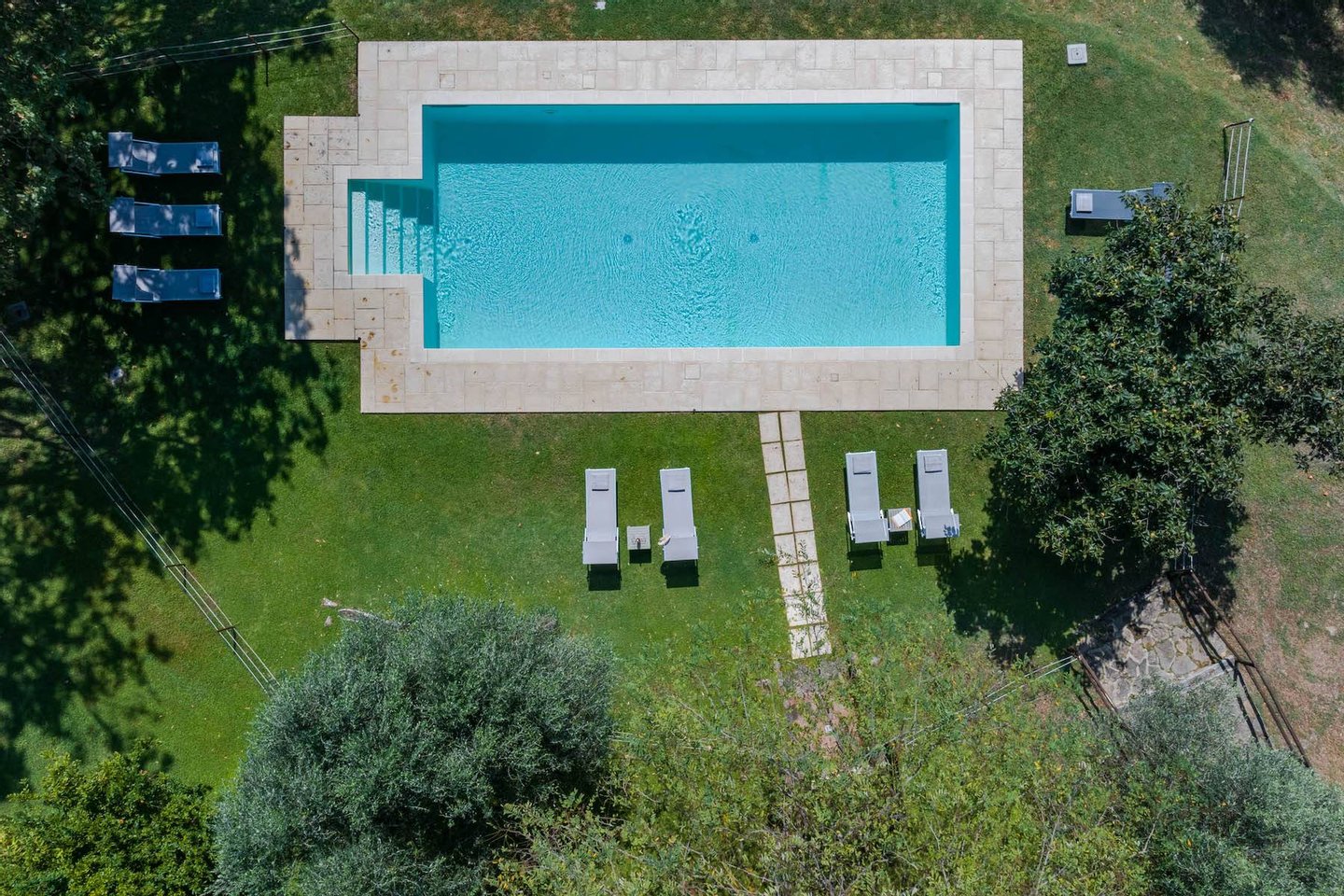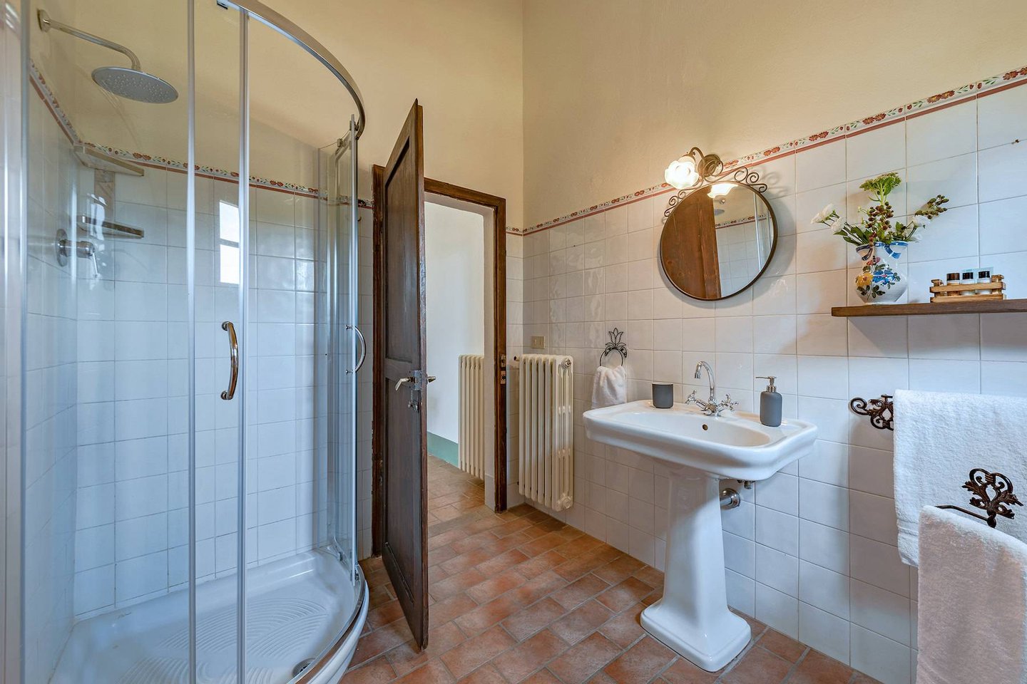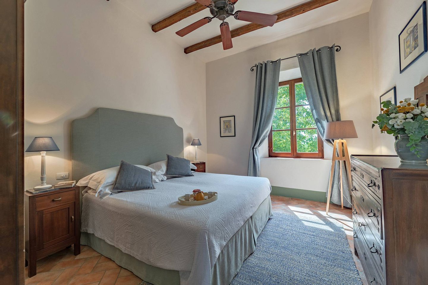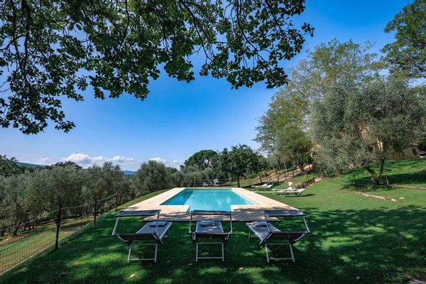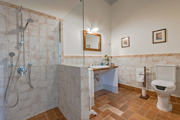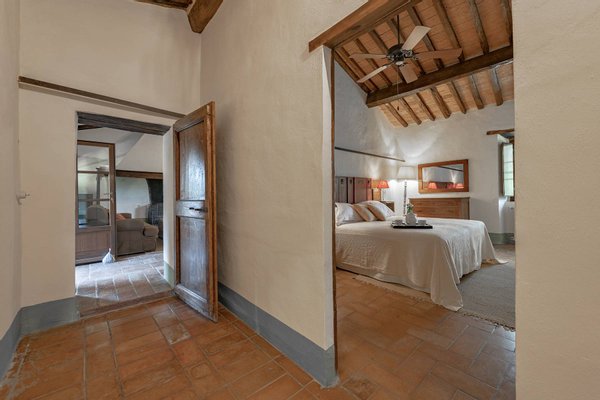A guest house full of charm completes the Borgo, with the upper floor designed as a loft with a wonderful master bedroom and bathroom. On the ground floor a beautiful living room with a stone and brick fireplace makes the atmosphere warm and cozy. Also on the ground floor a double bedroom with bathroom enjoys a special view of the olive grove and pool, just situated below the cottage.