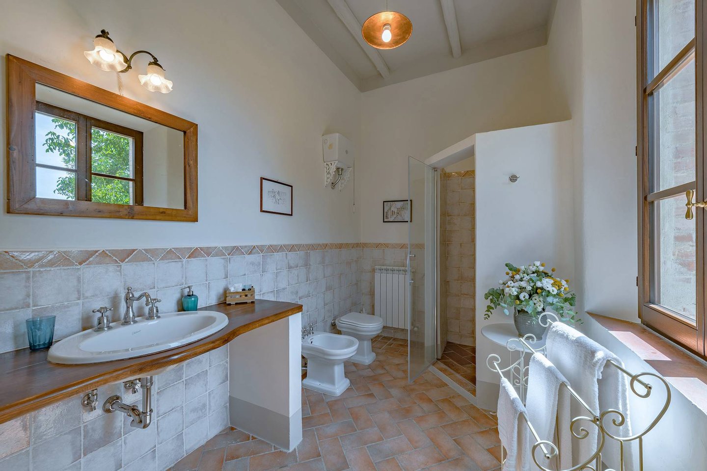 Borgo d'Orcia can host up to 18 people in 9 bedrooms and 8 bathrooms.