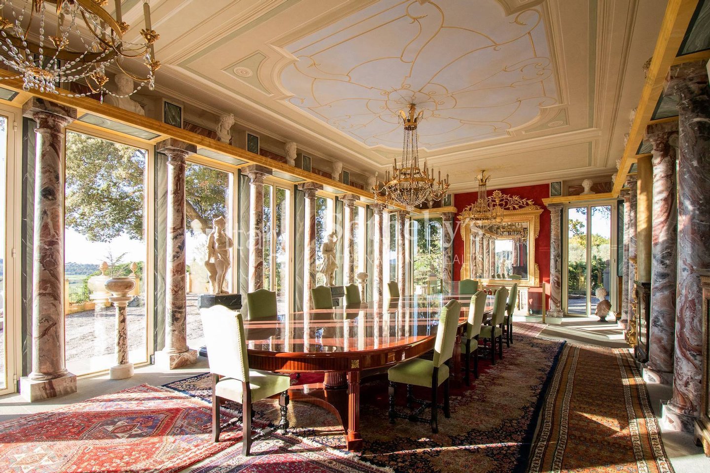 Im Erdgeschoss finden sich ein doppelter und äußerst eindrucksvoller Eingang mit einer fast zwanzig Meter langen Galerie, von der aus sich ein Esszimmer, eine Bibliothek, eine prächtig dekorierte große Küche und zwei große Salons öffnen. Das Erdgeschoss wird durch einen riesigen Freskensaal komplettiert.