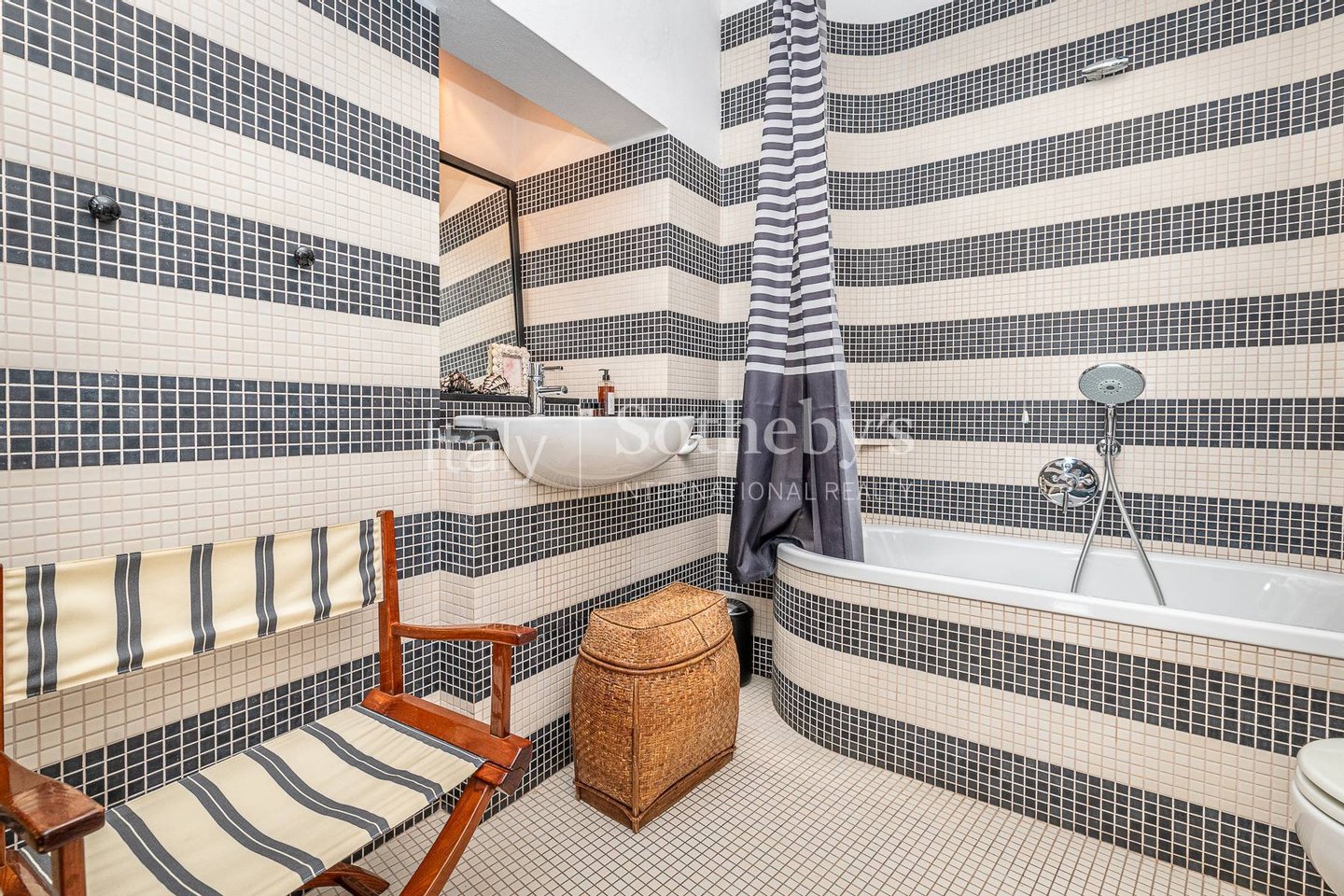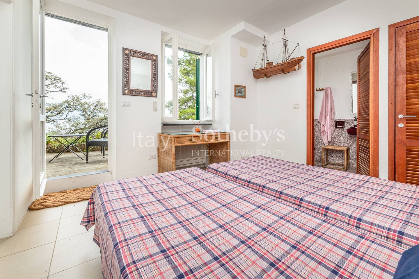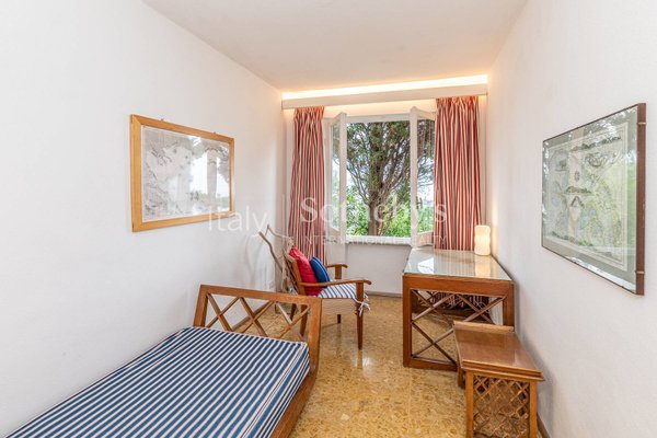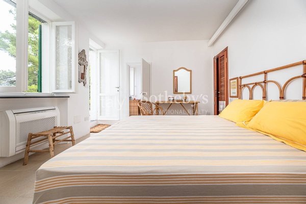 The sleeping area consists of: 1 bedroom with double bed (not divisible), ensuite bathroom with bathtub and garden view; 2 bedrooms with double bed (which can be divided into two single beds). Only 3 bedrooms have a sea view, while the fourth has a garden view.