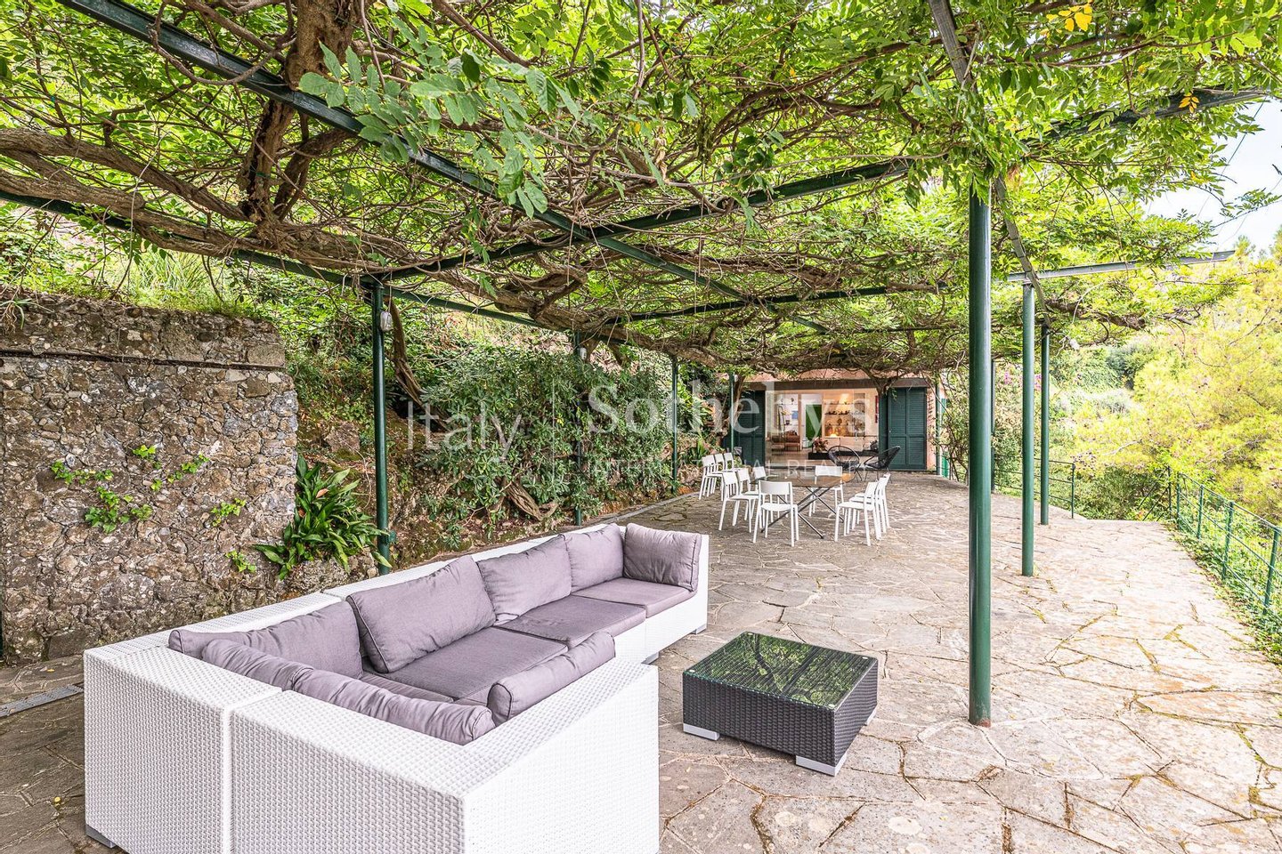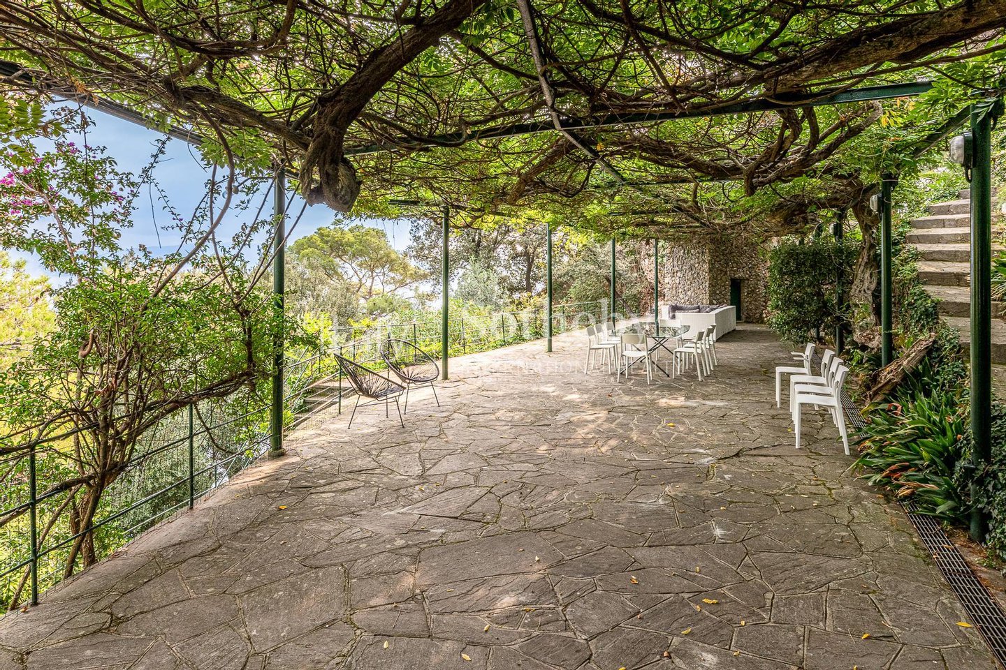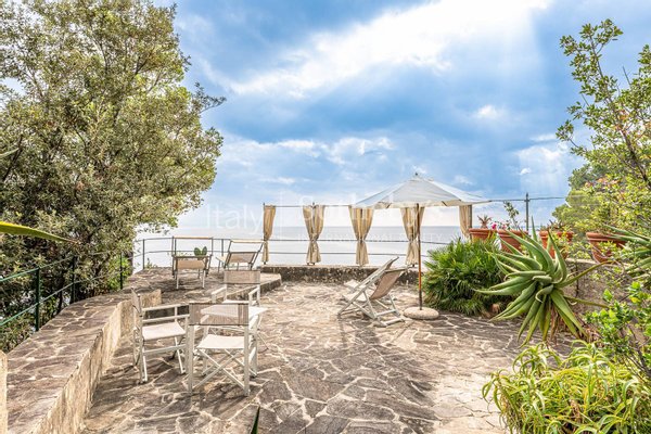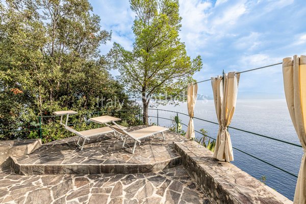Among the outdoor spaces, we find: a large terrace shaded by a centuries-old wisteria, an outdoor dining area, a relaxation area with umbrella and a solarium with sun loungers, to relax while enjoying the beautiful sea view and the surrounding landscape.