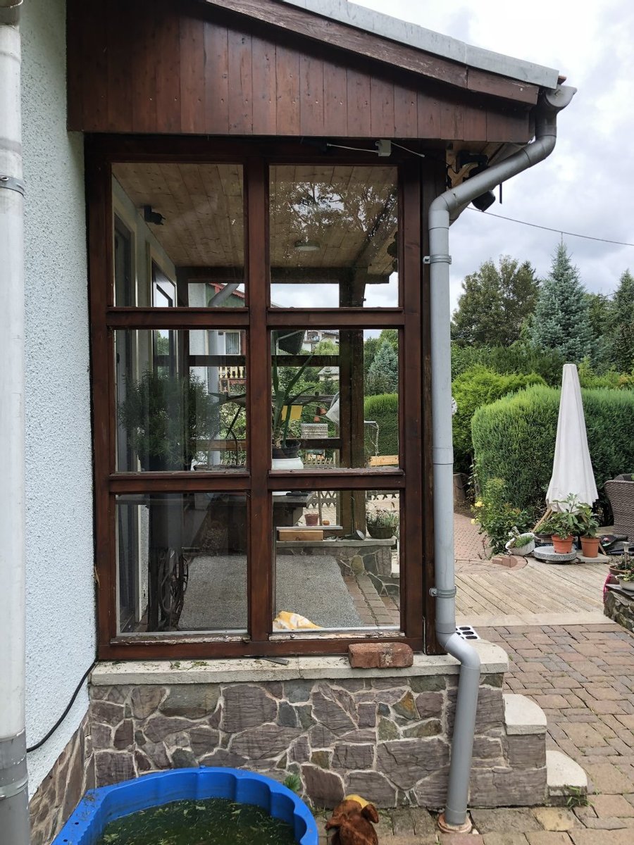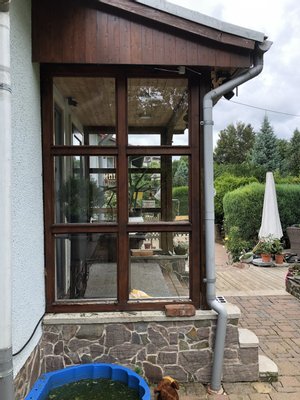 Die Fenster bestehen aus Kunststoff und sind zweifach verglast.