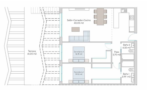 Diese wunderschönen Obergeschoss-Wohnungen verfügen über eine konstruierte Fläche von ca. 221 m² (inklusive Terrassen) mit