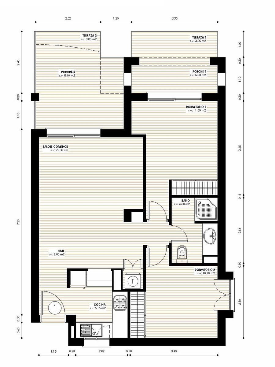 Die Appartements verfügen unter anderem über Klimaanlage, Aluminiumfenster mit Doppelverglasung, Einbauschränke in den Schlafzimmern, Einbauküchen mit Elektrogeräten, Sicherheitstüren sowie Badezimmer mit Möbeln und Duschwänden. Die Anlage verfügt über einen Gemeinschaftspool und Kfz-Stellplätze.