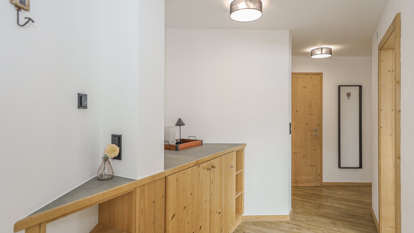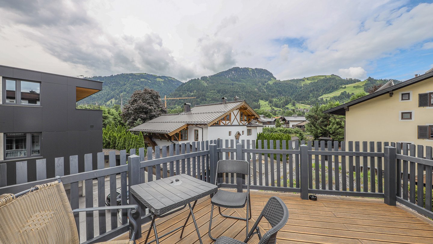 Von der Wohnung hat man einen schönen Ausblick auf den Hahnenkamm und dank der südwestlichen Ausrichtung fast den ganzen Tag Sonne.