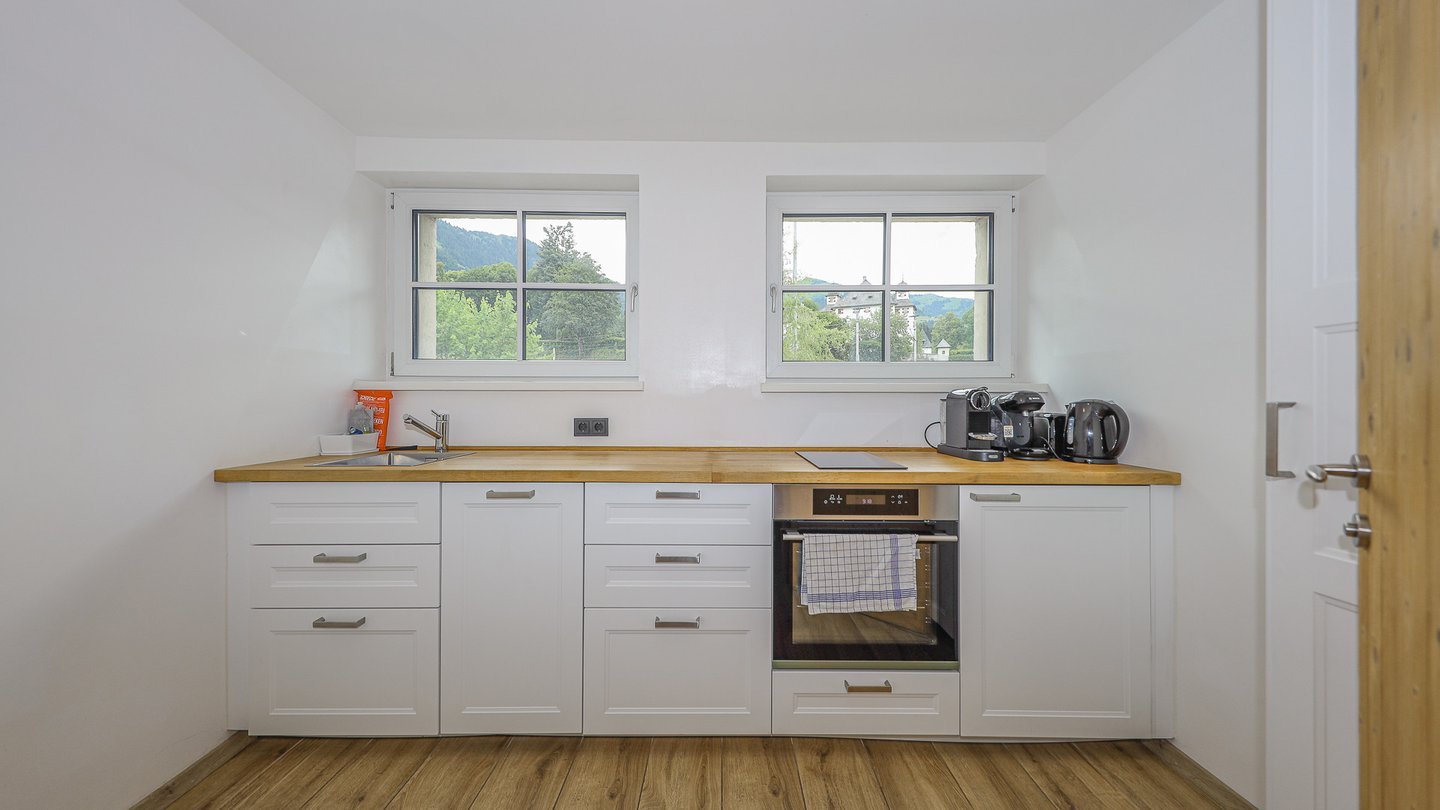Die Suiten am Schloss liegen in sonniger Lage von Kitzbühel. Die Fußgängerzone, als auch die Skibushaltestelle ist in wenigen Gehminuten zu erreichen.