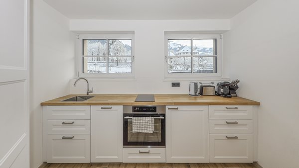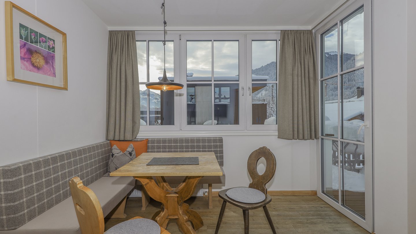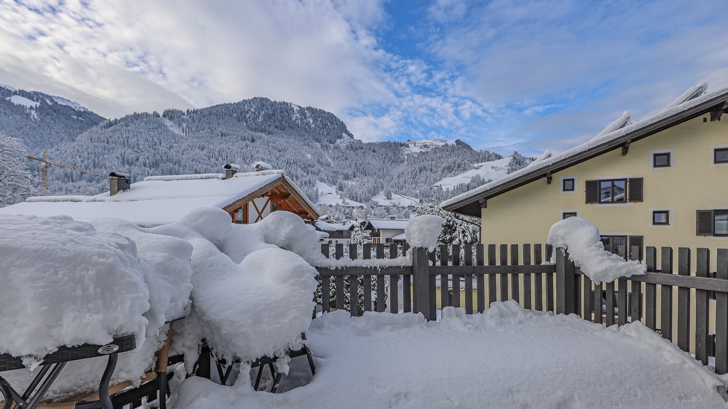 Von der Wohnung hat man einen schönen Ausblick auf den Hahnenkamm und dank der südwestlichen Ausrichtung fast den ganzen Tag Sonne.