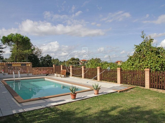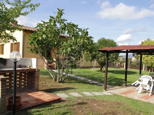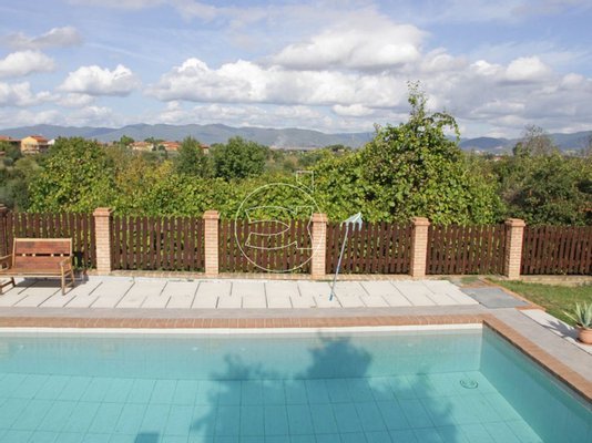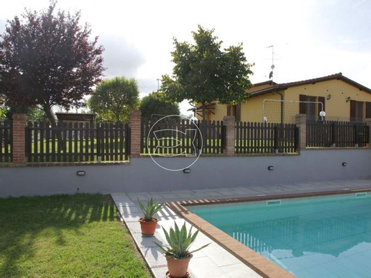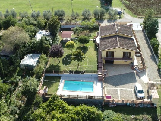 Das Anwesen hat einen großen Garten von ca. 1200 Quadratmetern, in dem sich ein Swimmingpool, ein Pavillon mit Grillplatz und ein großer Hof befinden. Die Villa mit ca. 140 Quadratmetern besteht aus einem großen Wohnbereich, Wohn-Esszimmer, Küche, 2 Schlafzimmern, 2 Bädern und einem Abstellraum.