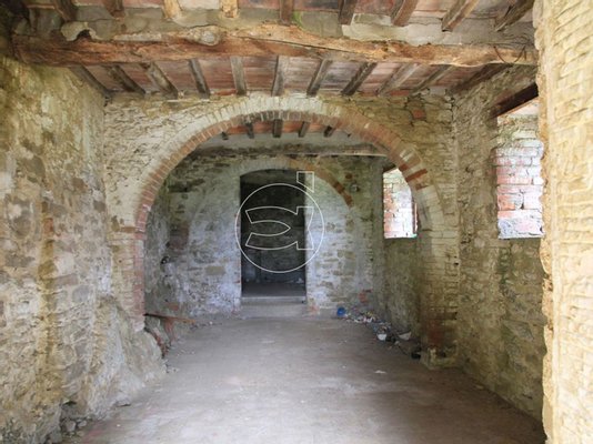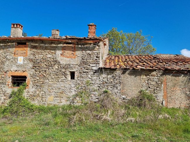 Ein renovierungsbedürftiges Bauernhaus aus Stein mit einem Nebengebäude, nur wenige Kilometer vom Stadtzentrum von Arezzo entfernt und mit hervorragender Straßenanbindung, liegt in einer herrlichen grünen Umgebung mit schönem Panoramablick auf die Stadt.