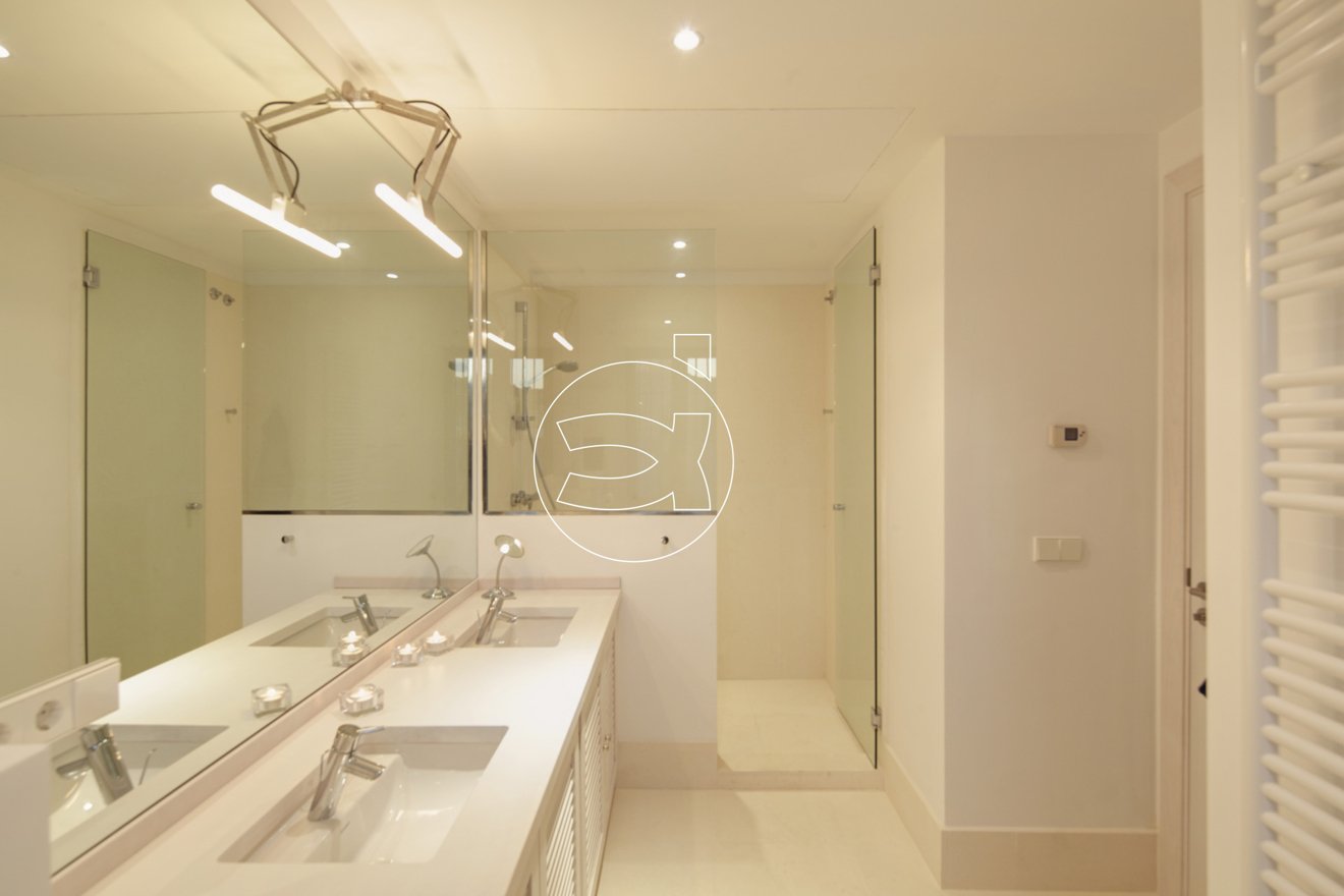 Darüber hinaus beeindruckt die Villa mit einer imposanten Auffahrt, einem 24-Stunden-Sicherheitsdienst, überdachten und offenen Terrassen mit direktem Zugang zum Garten und zum Poolbereich, einem Essbereich im Freien und einer Küche mit Grillbereich. Der Swimmingpool befindet sich zentral im sorgfältig angelegten Garten.