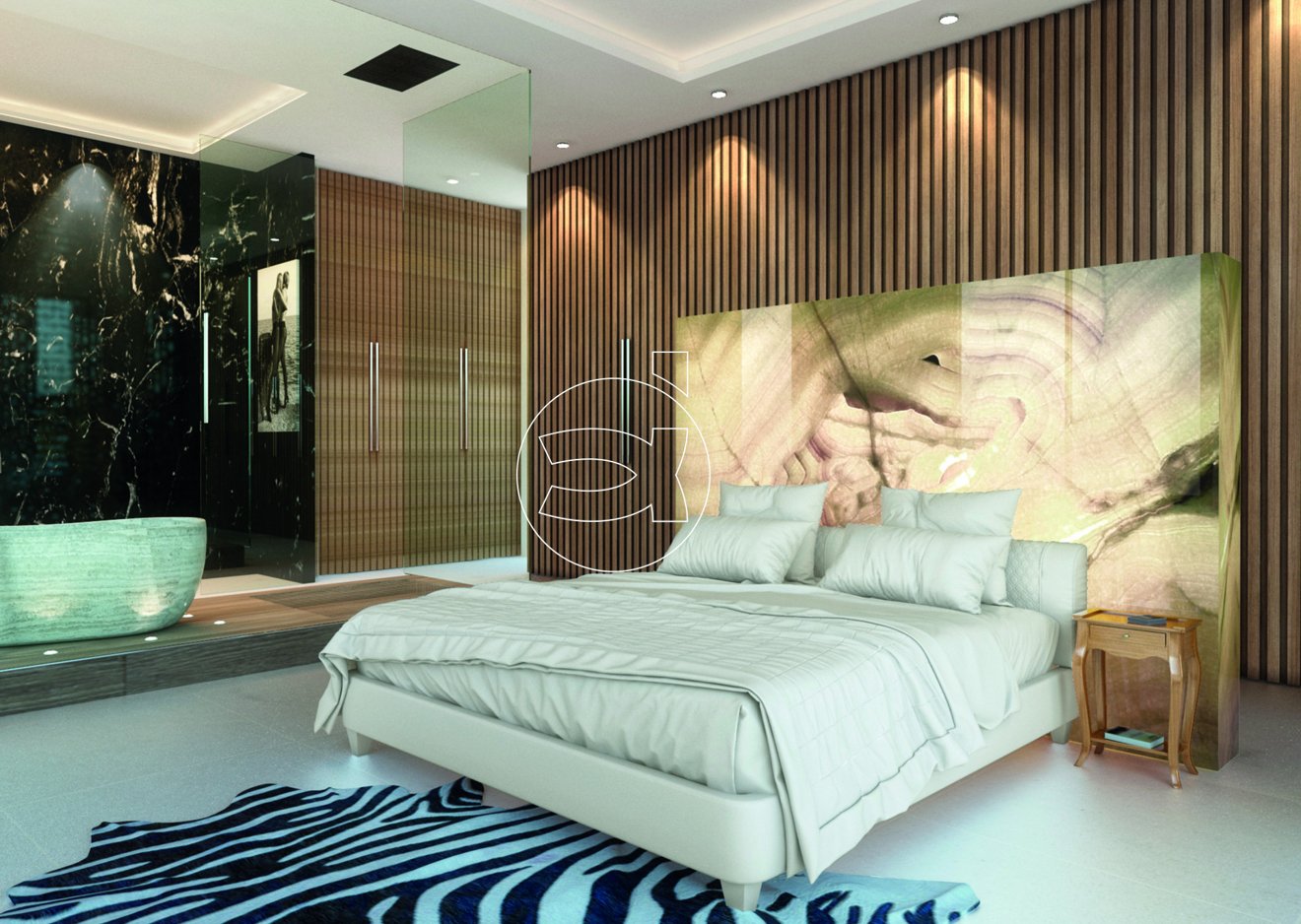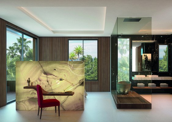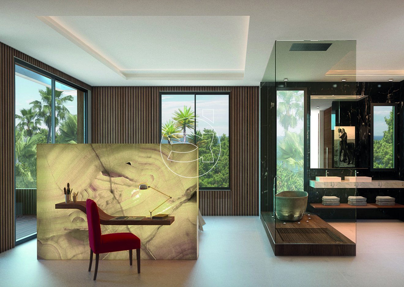 Die Innenräume dieser Villen sind ein Zeugnis für Designer-Wohnen und erstklassigen Wohnkomfort. Dazu gehören ein 5-Sterne-Spa, ein hochmodernes Domotiksystem und die großzügige Verwendung von Materialien wie Negro Marquina-Marmor und -Stein, wobei gleichzeitig auf ökologische Nachhaltigkeit geachtet wird.