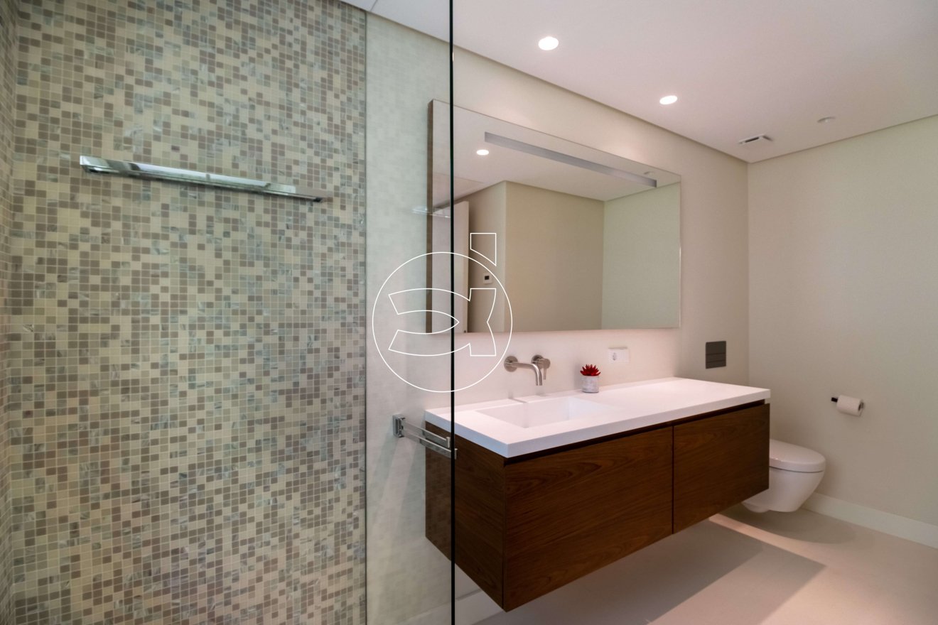 Die Villa erstreckt sich über zwei untere Stockwerke und bietet eine Reihe von Annehmlichkeiten, darunter einen Fitnessraum, eine Sauna, einen Innenpool, ein integriertes Kino, einen großen Unterhaltungsbereich, Personalräume und eine großzügige Garage.