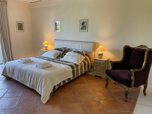 Das Hauptschlafzimmer dieser Villa ist ein wahres Paradies, mit zwei luxuriösen Ankleidezimmern, die reichlich Stauraum für Ihre Garderobe und Accessoires bieten.