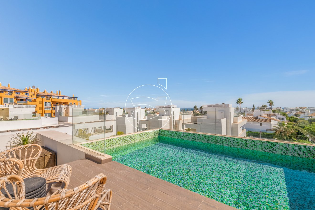 Die herrliche Dachterrasse mit Panoramablick und teilweisem Meerblick ist ein reines Vergnügen, verfügt über ein Tauchbecken und bietet Platz zum Sonnenbaden, Essen im Freien, Yoga und zum Beobachten romantischer Sonnenuntergänge.