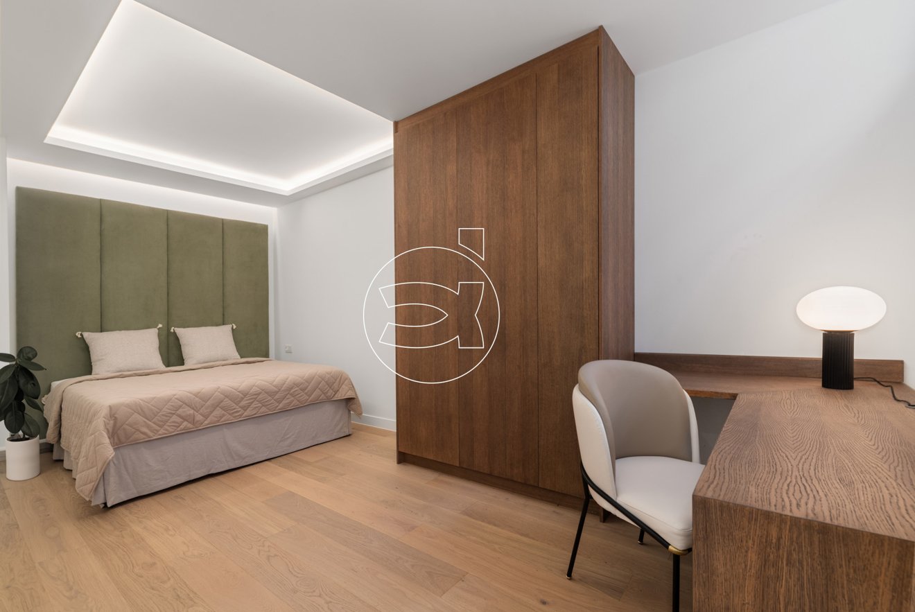 Ein geräumiges, offen gestaltetes, modernes Wohnzimmer, ein Essbereich und eine Küche vereinen Qualität und Stil. Hinzu kommt eine wunderschöne 55 m² große Terrasse, die sich perfekt zum Entspannen eignet, da sie eine natürliche Erweiterung des Wohnzimmers nach draußen darstellt.