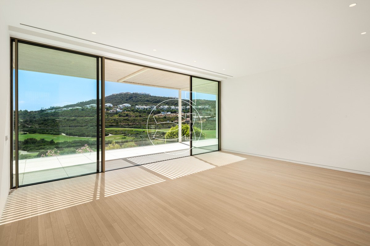 Diese außergewöhnliche Villa befindet sich auf einem erhöhten Grundstück im Resort Finca Cortesin und bietet einen Blick auf den Golfplatz und das Meer.