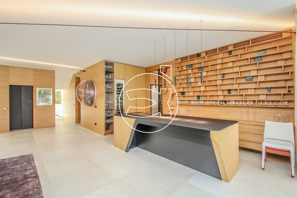 3 Küchen: eine im Außenbereich mit BBQ, eine weitere im Innenbereich mit professionellen Geräten und die dritte ist in das Wohnzimmer integriert.