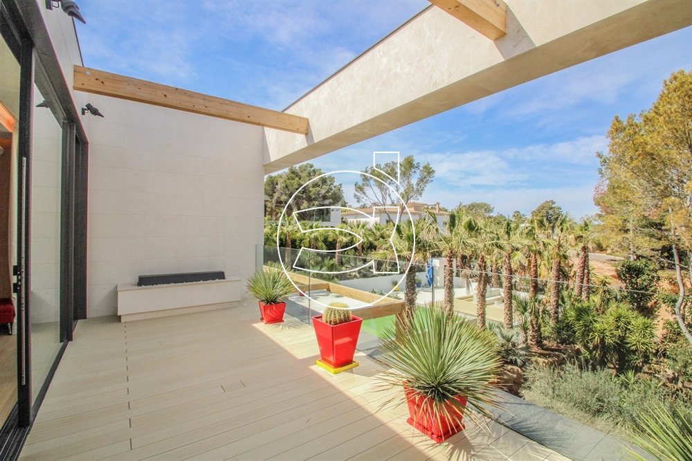 Die im Jahre 2023 fertiggestellte Luxus-Villa, verfügt über 1.041 m2 bebaute Fläche und ein 1.850 m2 großes Grundstück mit tropischem Garten, Palmen und exotischen Pflanzen.