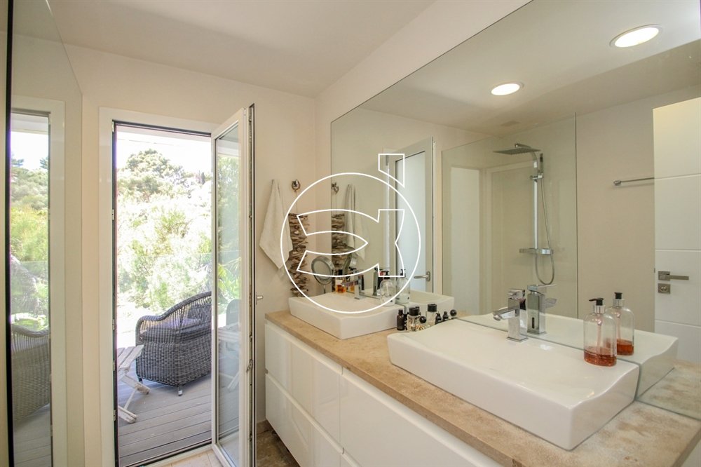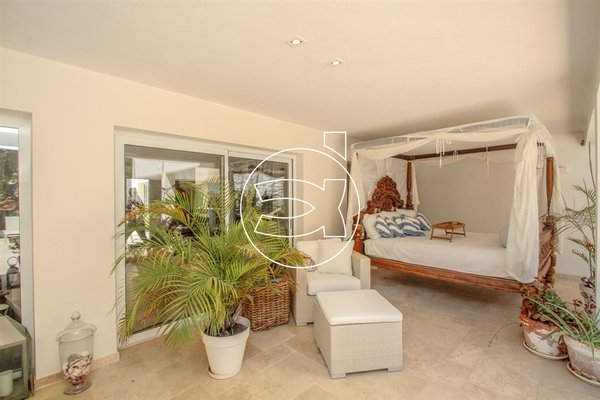 Die Immobilie bietet Ihnen zwei verschiedene Zugänge und eine separate Gästewohnung mit maximaler Privatsphäre und Sicherheit. Alle offenen Wohnbereiche befinden sich auf einer Ebene, wobei die Schlafzimmer sich allesamt im Erdgeschoss des Hauses befinden und es selbst in den heißen Sommermonaten angenehm kühl bleibt.