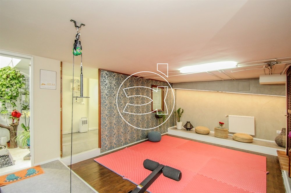 Garage, Waschküche, 2x Abstellräume, Gäste WC, Sauna, Dusche, Fitnessraum, Massageraum, Mini-Patio