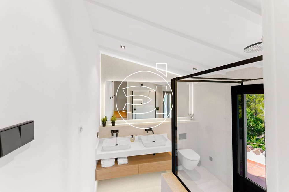 Eine Oase der Ruhe erwartet Sie im separaten Poolbereich, der einen atemberaubenden Blick auf die majestätischen Cala Moragues Berge bietet. Im Inneren verfügt die Villa über vier luxuriöse Schlafzimmer, jedes mit eigenem Bad für zusätzlichen Komfort & Privatsphäre.