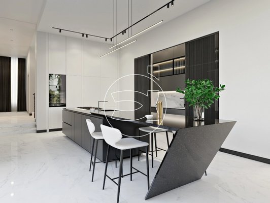 Der Wohnbereich verfügt über hohe Decken, Doppelschlafzimmer mit raumhohen Fenstern, eine moderne Küche mit Spitzengeräten und ein hochmodernes SPA mit Sauna, Hammam und zusätzlichem Raum für Unterhaltung.