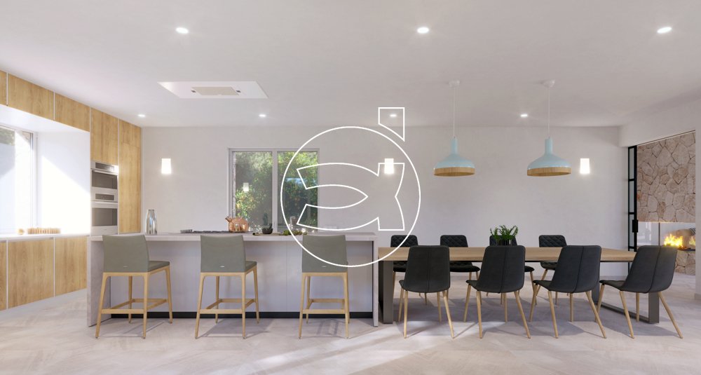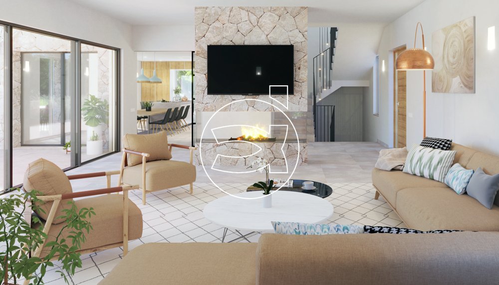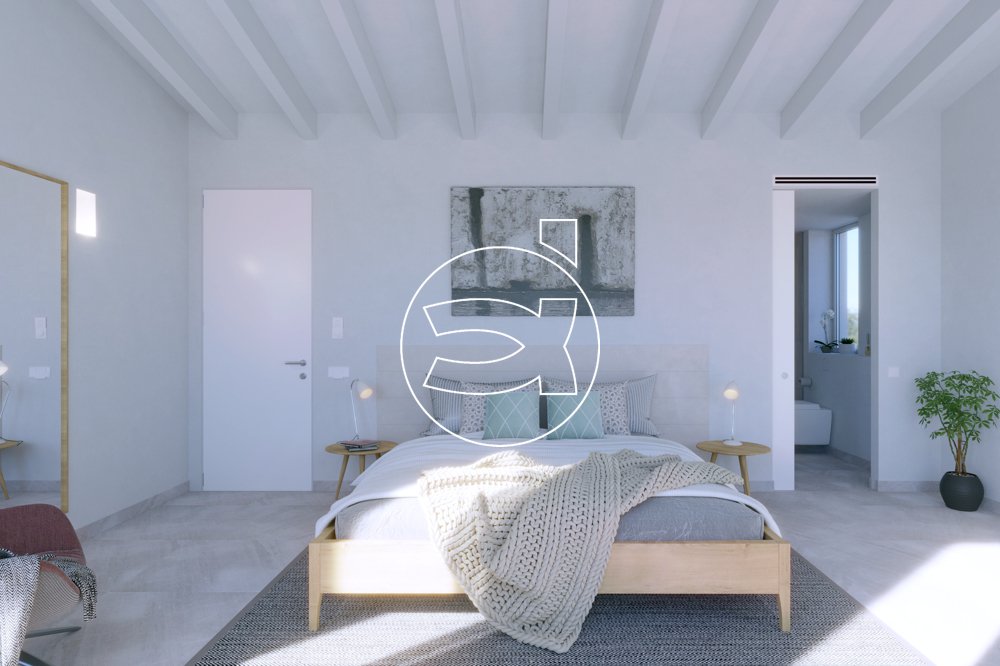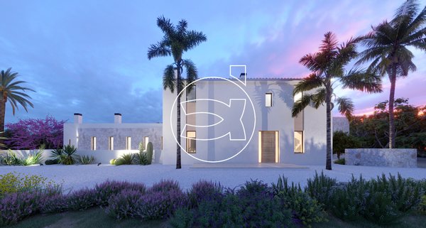 Eine Kombination aus authentisch mallorquinischem und zeitgemäßem Neubau sorgt für ein spektakuläres Wohngefühl mit Ausblicken auf die weite Natur sowie die Kirche von Ses Salines.