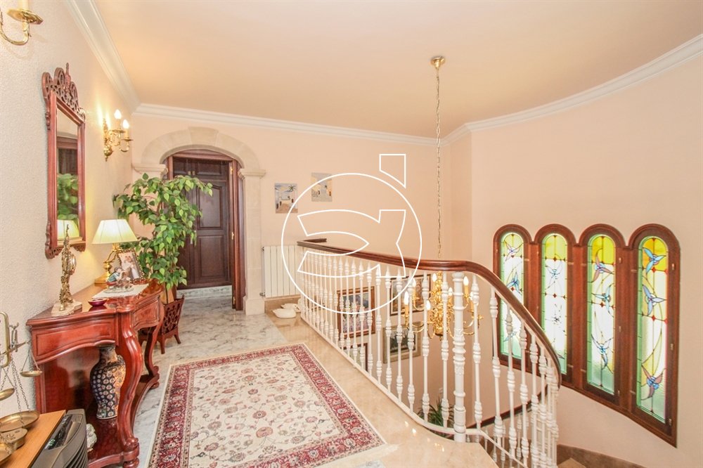 Im Erdgeschoss befindet sich die Küche mit separater Speisekammer, ein großzügiges Wohnzimmer, zwei Bäder und ein Schlafzimmer. Während die obere Etage mit 4 Schlafzimmer und zwei Bädern ausgestattet ist.