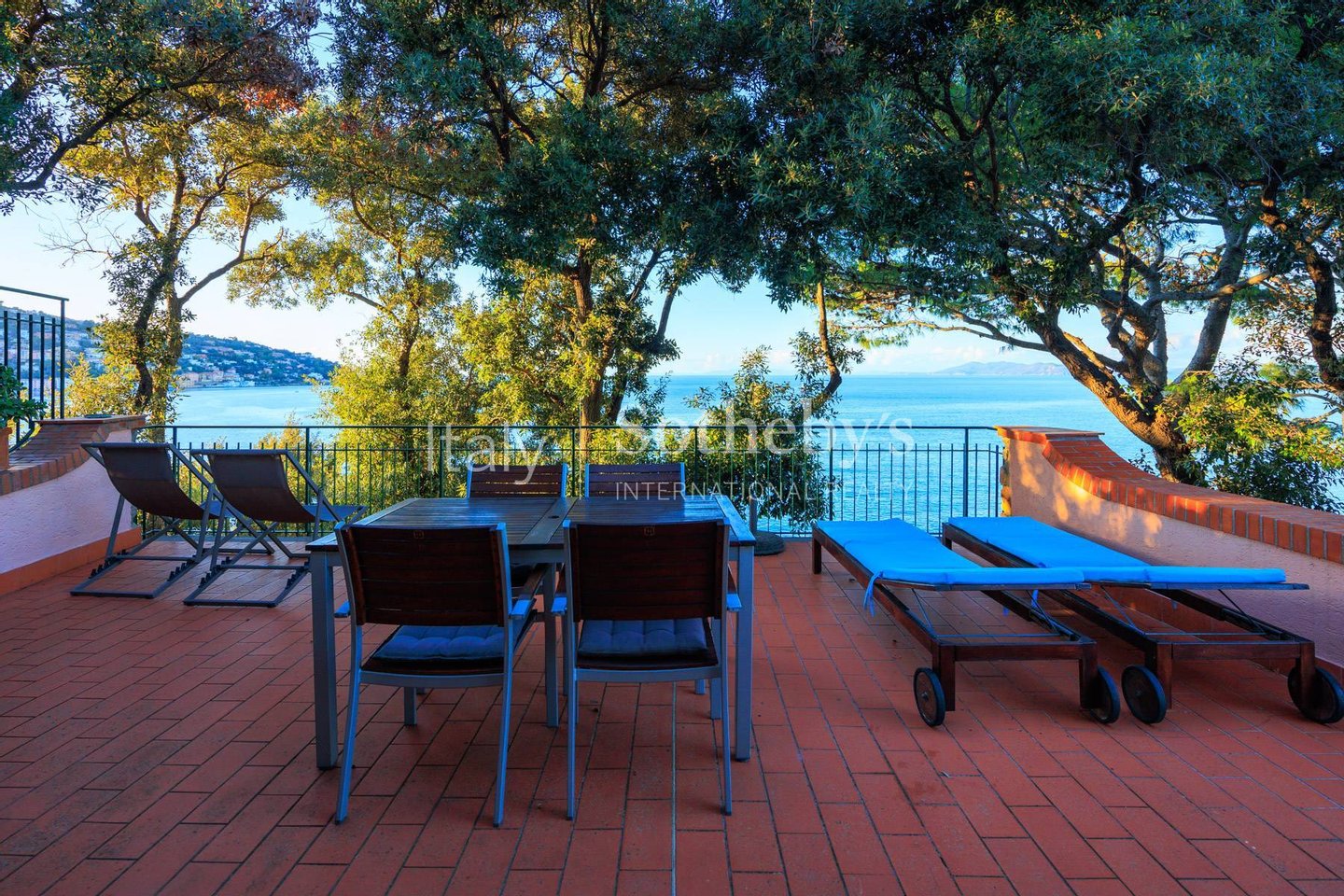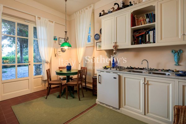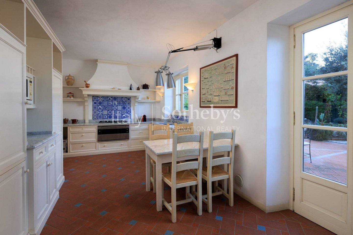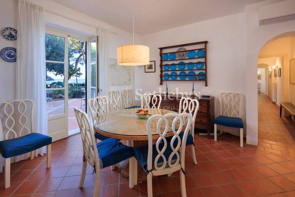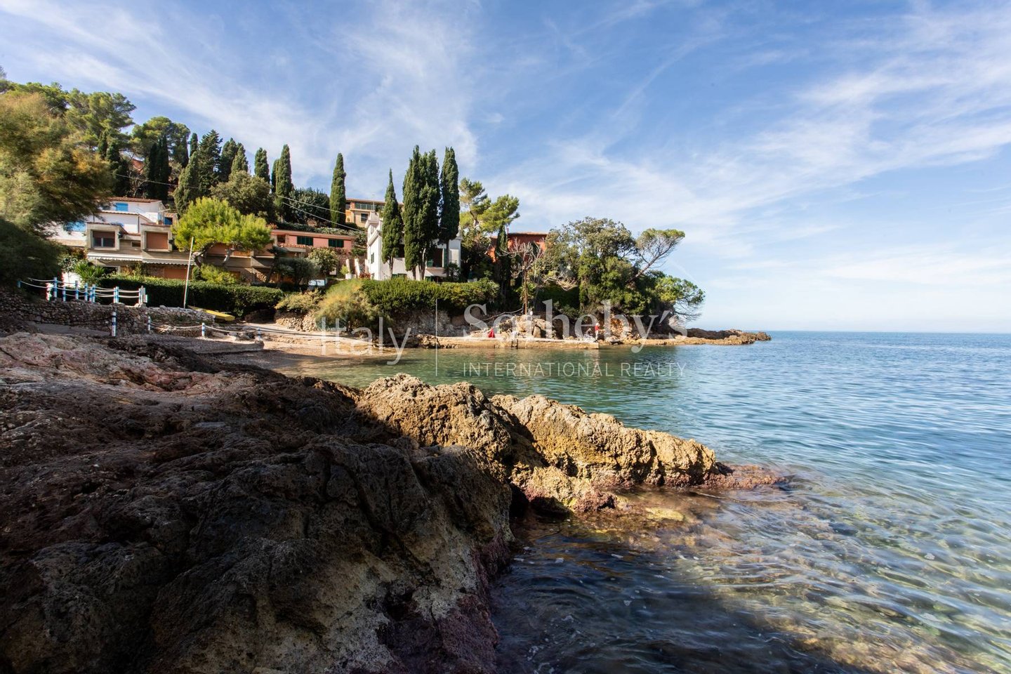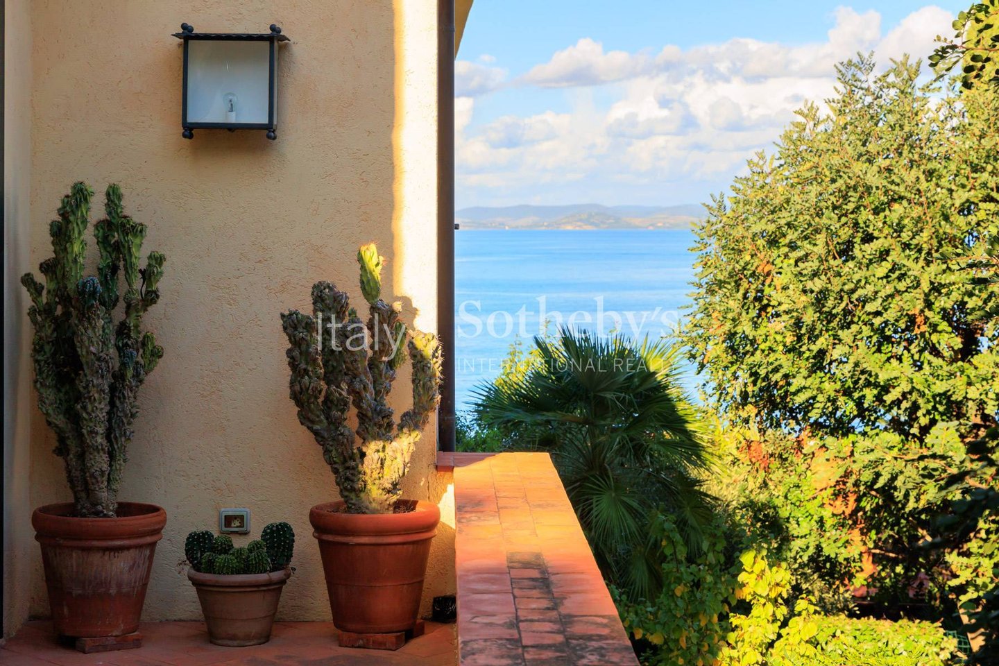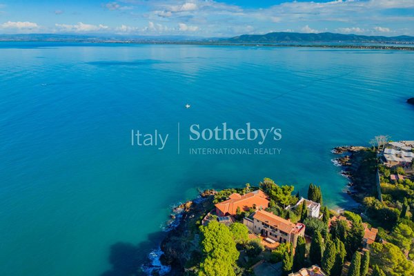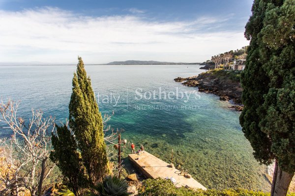 In einer bezaubernden Lage liegt die Villa "pied dans l'eau" mit Blick auf Porto Santo Stefano und den gesamten Golf bis Punta Ala. Im sorgfältig angelegten mediterranen Garten, der zum Meer führt, findet man die Villa (563 qm), aufgeteilt in 3 Hauptwohnungen sowie eine kleinere für das Personal, ein großes Lagerhaus (96 qm) auf zwei Ebenen, das leicht in ein Gästehaus umgewandelt werden kann, ein weiteres Lagerhaus (44 qm, derzeit auch als Wasch- und Bügelraum genutzt), das Solarium und verschiedene dedizierte Bereiche für das Leben im Freien für jede Wohnung. Im unteren Teil der Villa befindet sich die größte Wohnung (229 qm) mit 5 Schlafzimmern und ebenso vielen Bädern, Wohnzimmer und Küche, dann die angrenzende kleinere Wohnung mit Wohnzimmer, Schlafzimmer und Bad; im Erdgeschoss eine Wohnung mit 4 Schlafzimmern und 5 Bädern, Wohnzimmer und Küche; im Dachgeschoss ein großer Wohnbereich mit großen Fenstern, die sich zur herrlichen "Top-Roof"-Terrasse öffnen, von der aus man die schönste Aussicht genießen kann, Schlafzimmer mit Bad. Die Ausrichtung der Villa und des Gartens ermöglicht es, bezaubernde Landschaften und Sonnenuntergänge zu erleben, besonders von den Klippen am Meer auf der einen Seite und vom privaten Strand auf der anderen, die alle leicht zugänglich sind. Aufgrund der Privacy, die die 4 Wohnungen bieten, und der Nähe zu Porto Santo Stefano, das zu Fuß erreichbar ist, eignet sich das Anwesen auch für den Hotelbetrieb. Die Möglichkeit, einen Pool zu bauen, besteht ebenfalls.